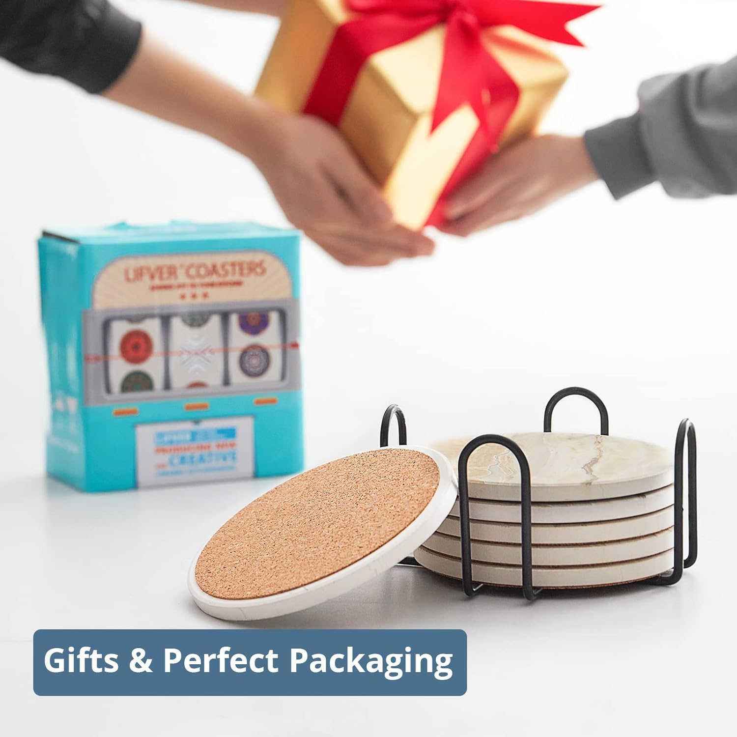 • Stylish & Giftable: Ceramic coasters with a natural stone look, this modern coaster complement coffee tables and marble surfaces beautifully. Many customers consider sandstone coasters as an ideal white elephant gifts for adult useful, often recommended by friends