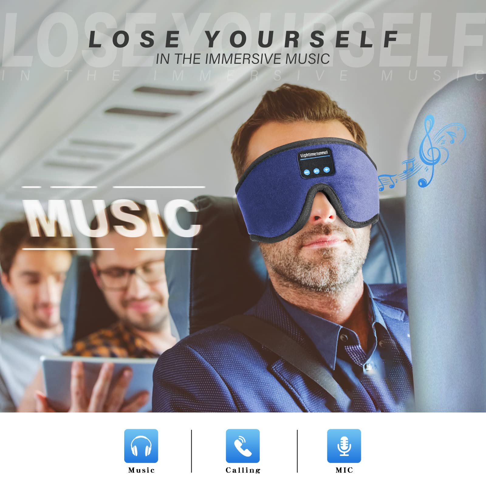 LIGHTIMETUNNEL Sleep Headphones, 3D Bluetooth Sleep Mask, Washable Sleeping Headphones with Ultra Thin Stereo Speakers Microphone Hands Free for Insomnia Travel Blue Color