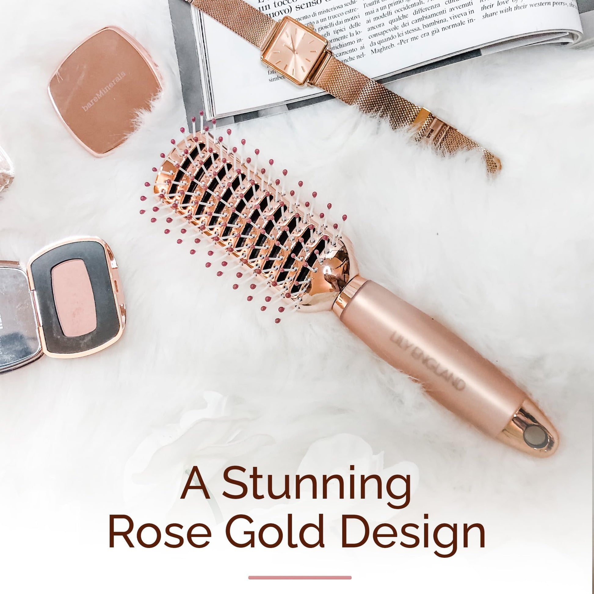Lily England Vented Hair Brush for Blow Drying - Easy Detangling Hairbrush for Women for Fine, Thick, Curly Hair with Non-Slip Gel Handle - Static Free Vent Hair Brushes for Faster Drying, Rose Gold