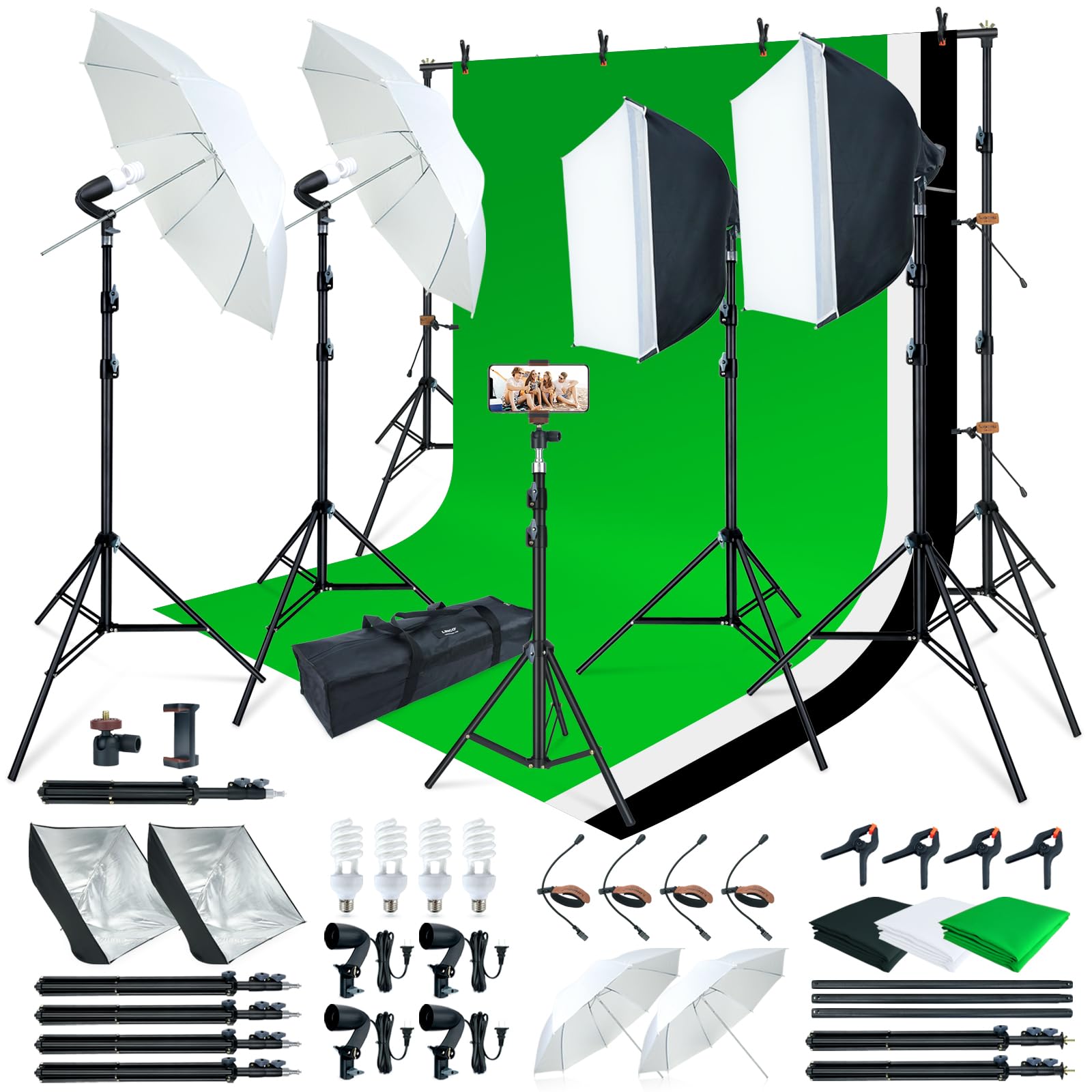 LINCO Lincostore Photo Video Studio Light Kit AM169 - Including 3 Color Backdrops (Black/White/Green) Background Screen