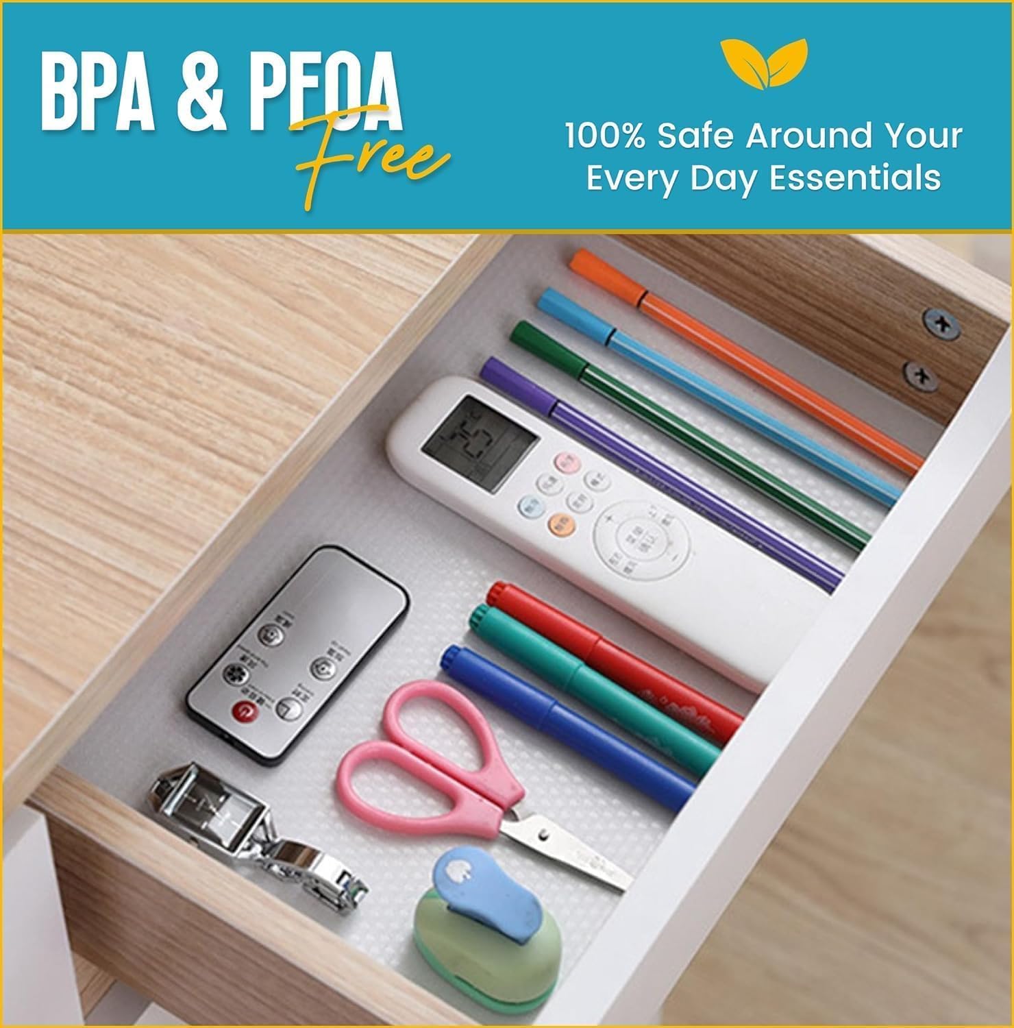 • SAFE & BPA-FREE: Ensure the safety of your kitchenware with our BPA-free kitchen shelf liner. Suitable for direct contact with silverware, glassware, and plates, these liners are an excellent choice for homes and offices, offering both protection and peace of mind