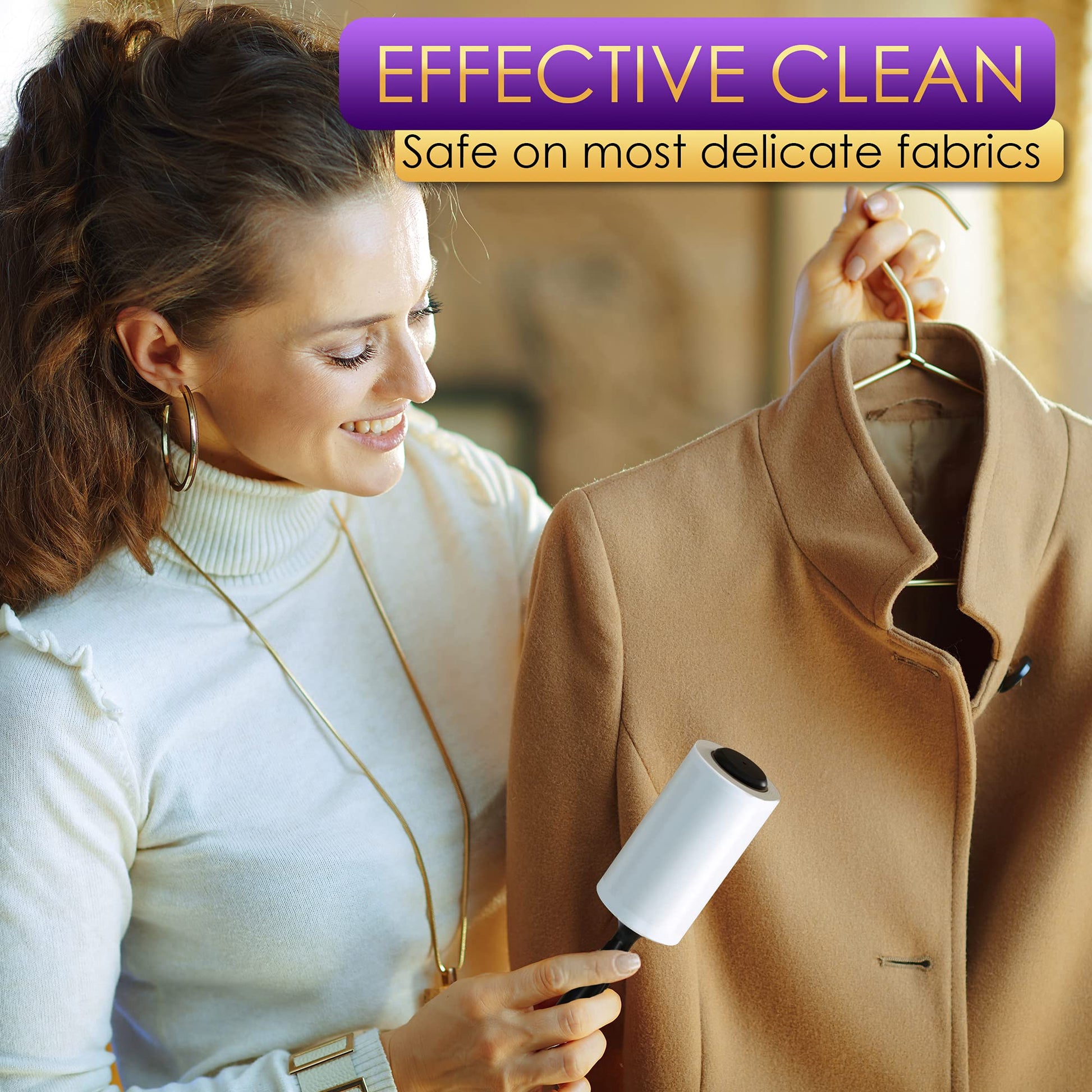 • Two convenient handles for a variety of uses. If you have a big family, you’ll find the pack with two lint rollers extremely useful. Keep them in two different rooms to ensure all fam members can use them when they want to. Besides, by making some space for the lint roller in the glove box of your car, you contribute to the hair-free look of your jacket or suit for an important meeting. No matter where you keep it, our sticky lint roller will help you look irresistible.