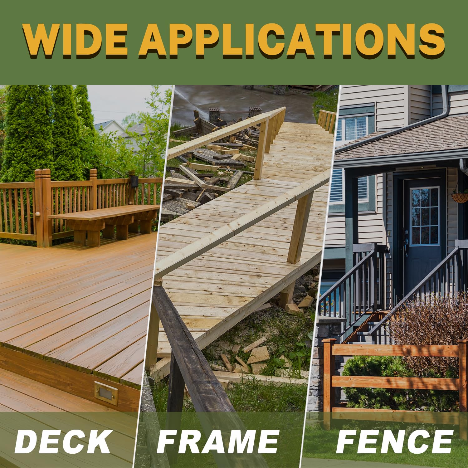 • AGGRESSIVE THREAD + SELF-TAPPING POINT: No pre-drilling, exterior decking screws with self-tapping point and coarse thread increase tapping power. Ideal exterior wood screws for treated deck, fence and other outdoor wood projects