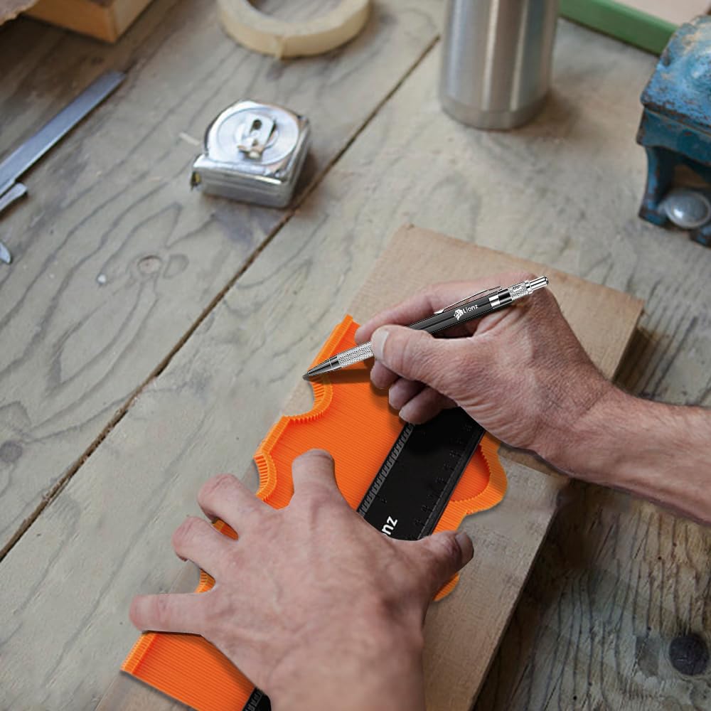 Lionz Contour Gauge with Lock, Mechanical pencil, and multifunction Tool 10+5 Inch, Super Gauge Shape and Outline tool to Copy Angles and Odd Shapes - Gift for Men, Handyman, DIY, Construction.