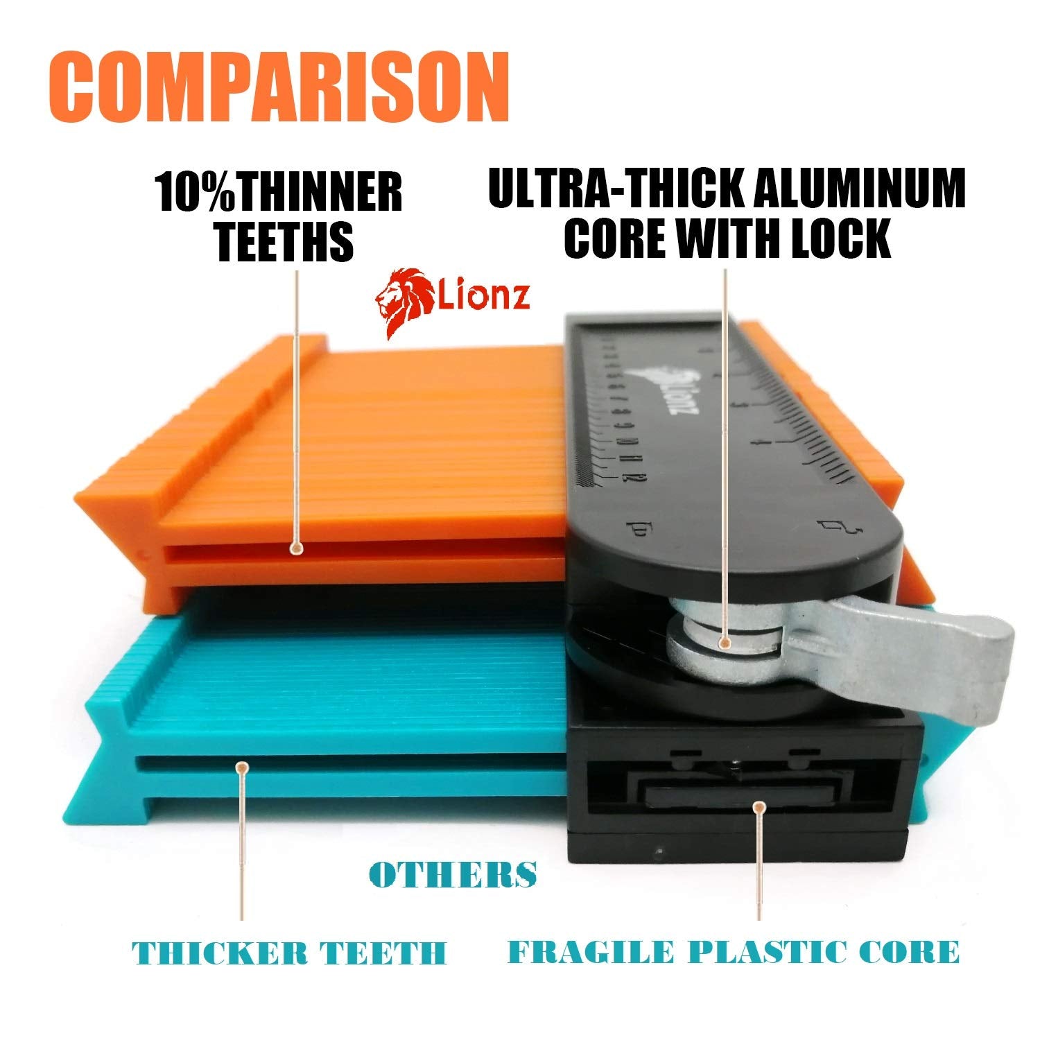 • ➤ WIDER AND PRECISE: Lionz upgraded contour gauge shape and outline tool, large 10' lockable contour gauge for big shapes and 5' profile gauge tool to copy smaller objects shapes more precisely. Irregular shape duplicator tool to copy all kinds of modelling, woodworking, flooring, tiling, carpet laying, laminating, diy projects. The movement of the pins is really flexible, allowing precise measuring at your fingertips.