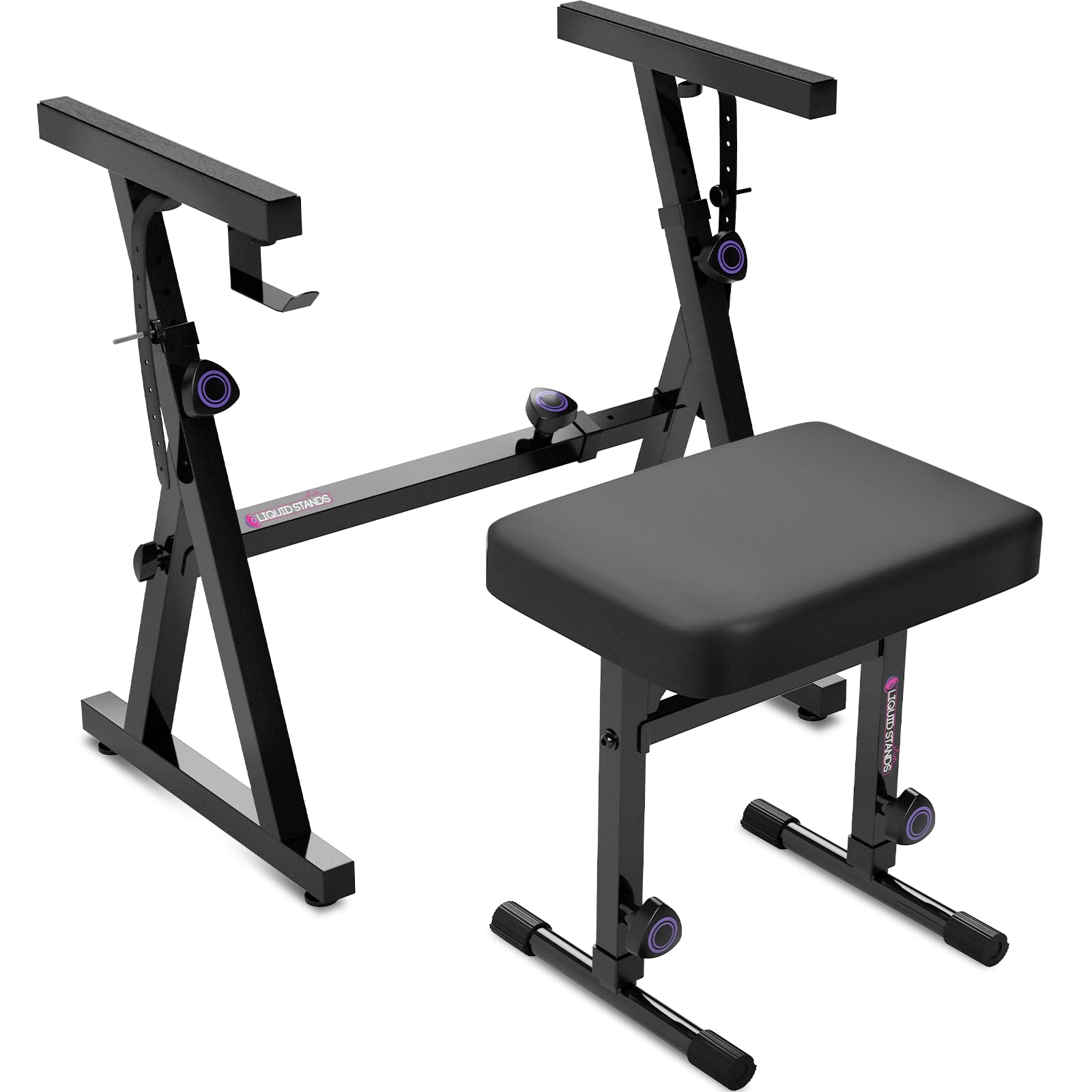 Liquid Stands Portable Heavy Duty Digital Piano Stand & Bench Set - Adjustable Keyboard Music Stand & Seat for 54-88 Key Electric Pianos