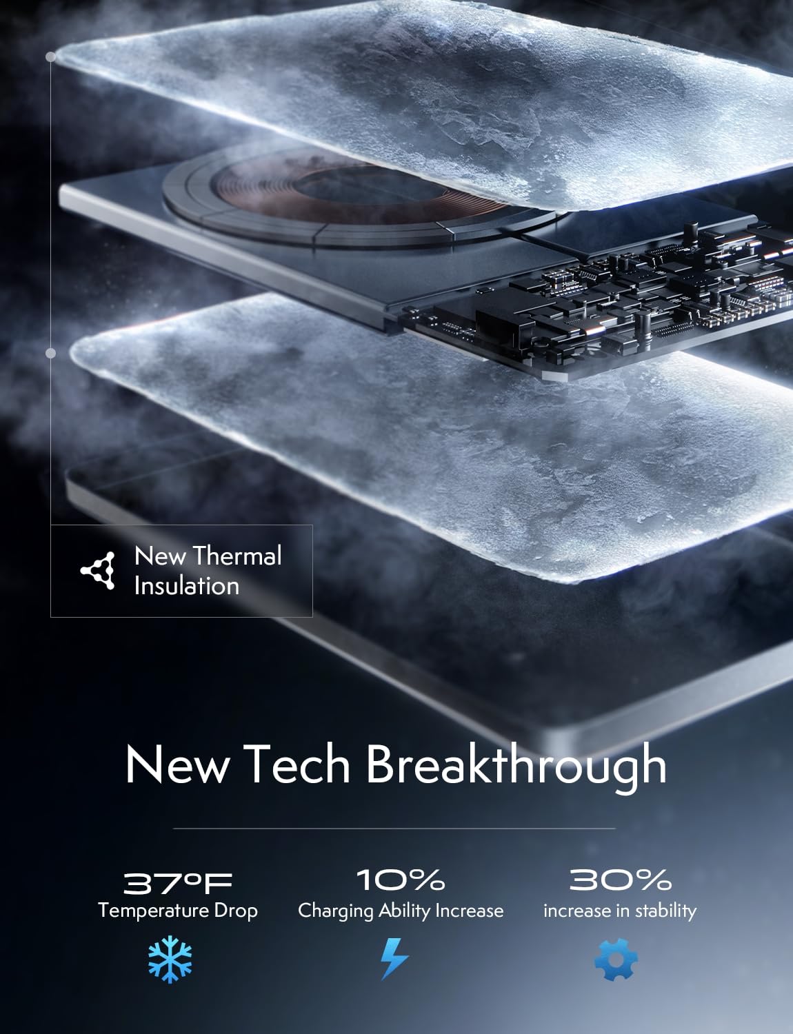 • Fast Charging: Charge your phone up to 100% in just 2 hours with advanced lithium-polymer technology and NTC temperature control, twice as fast as other portable chargers. Note: 7.5W wireless, 18W wired charging; speed decreases after 75%.Not compatible with non-MagSafe cases (may cause heating)