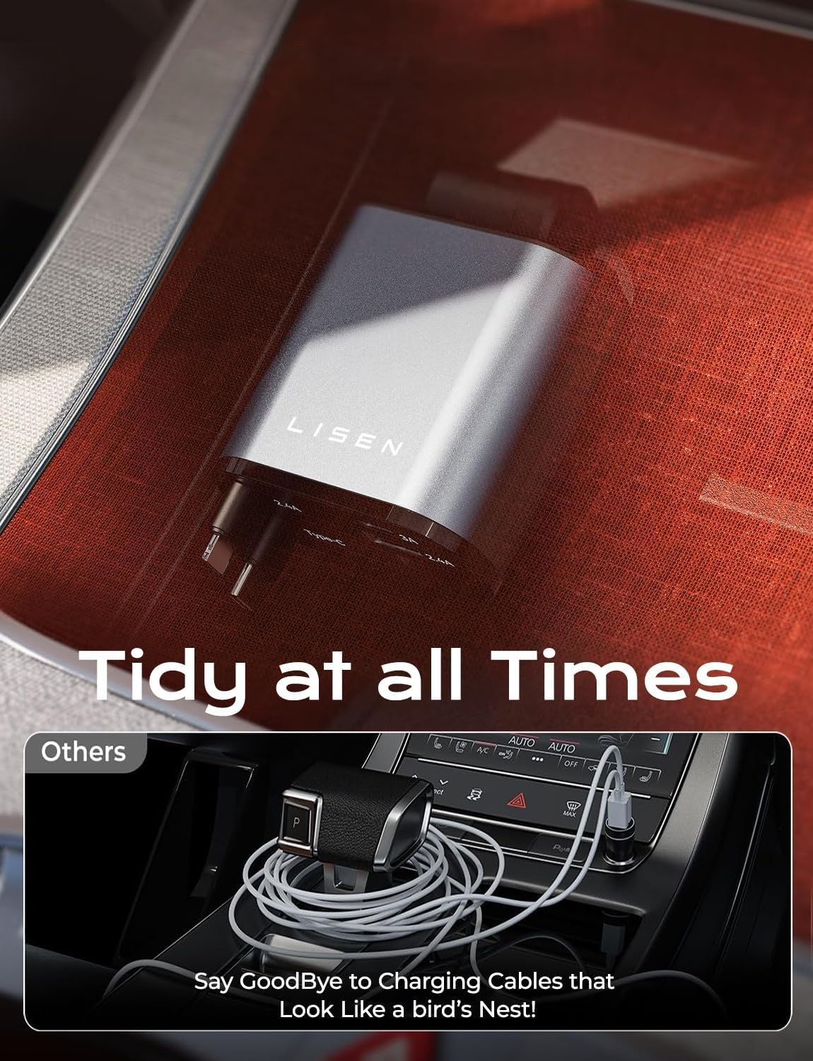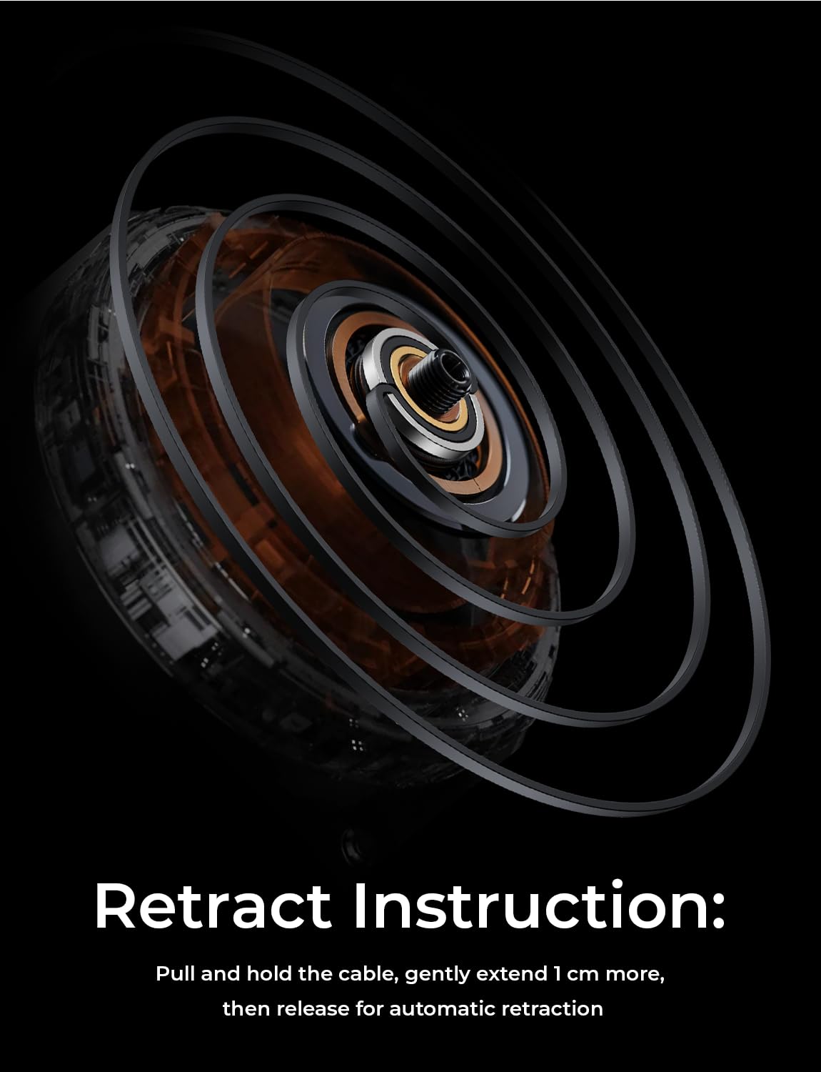 • 69W 4 Port Car Charger: Equipped with a 30W PD USB C port, a 12W USB A port, and additional charging options, this powerhouse charges up to four devices simultaneously. Ideal for fast charging the iPhone 16 Pro Max or other gadgets, itโ€™s versatile enough for truck accessories or stylish car essentials. Its smart power distribution maintains high speed charging across all ports. Retract Instruction: Pull and hold the cable, gently extend 1 cm more, then release for automatic retraction