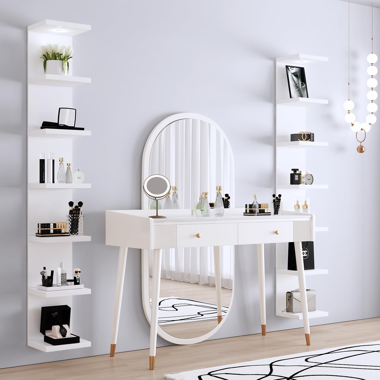 • VERSATILE USAGE FLOATING SHELF-Beyond its functionality, this wall shelf unit is not just limited to a display shelf. Explore amazing vanity designs, discover the latest makeup vanity ideas, or incorporate it into a mirror vanity collection. It's also an excellent addition to boys' Lego-themed bedrooms, adding both practical storage and a touch of modern design.
