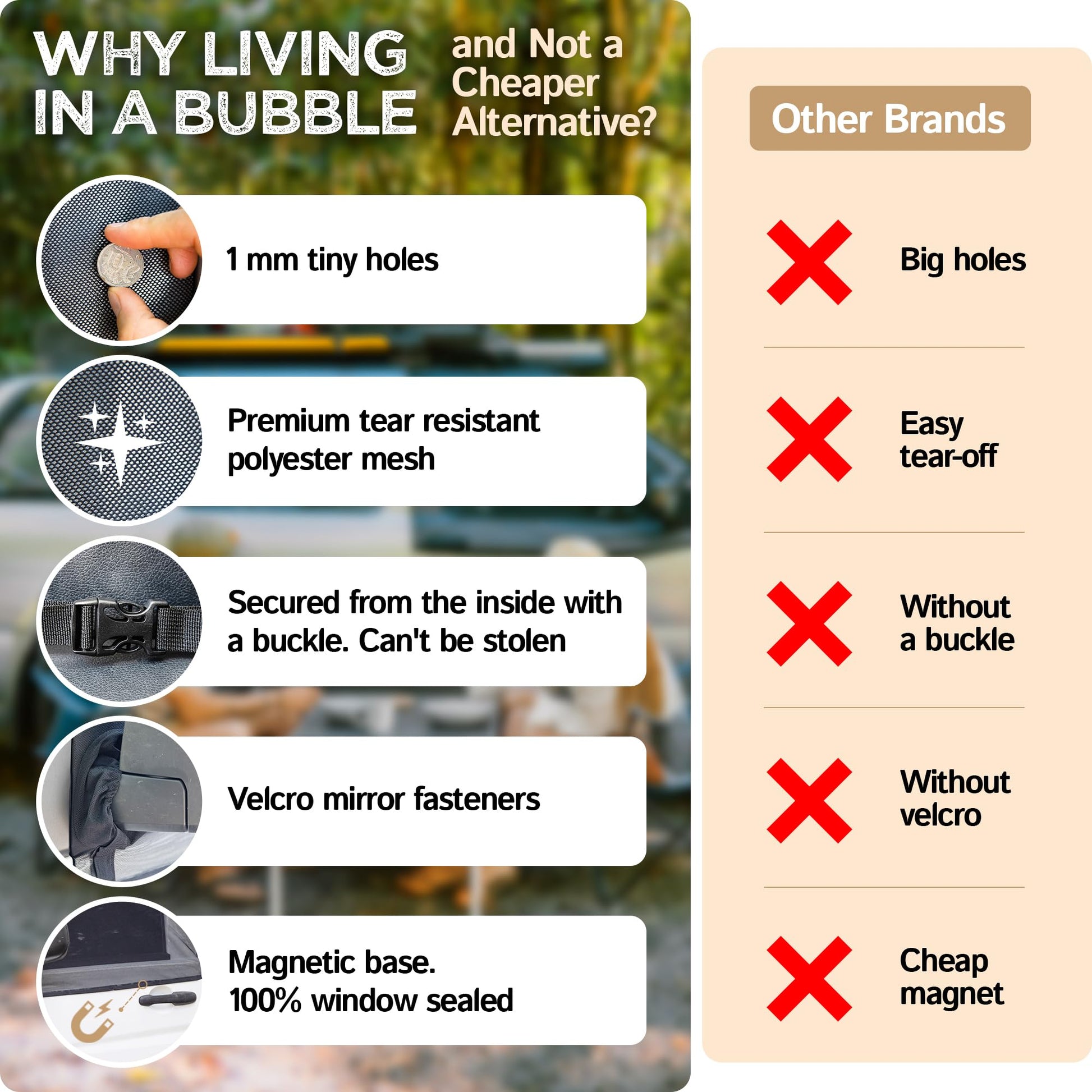 Living in a Bubble Magnetic Bug Screen for Front Doors (Pair), Universal Size for Sprinter, Metris, Ford Transit, and Other Vans & Cars - Car Living Essentials & Van Life Accessories