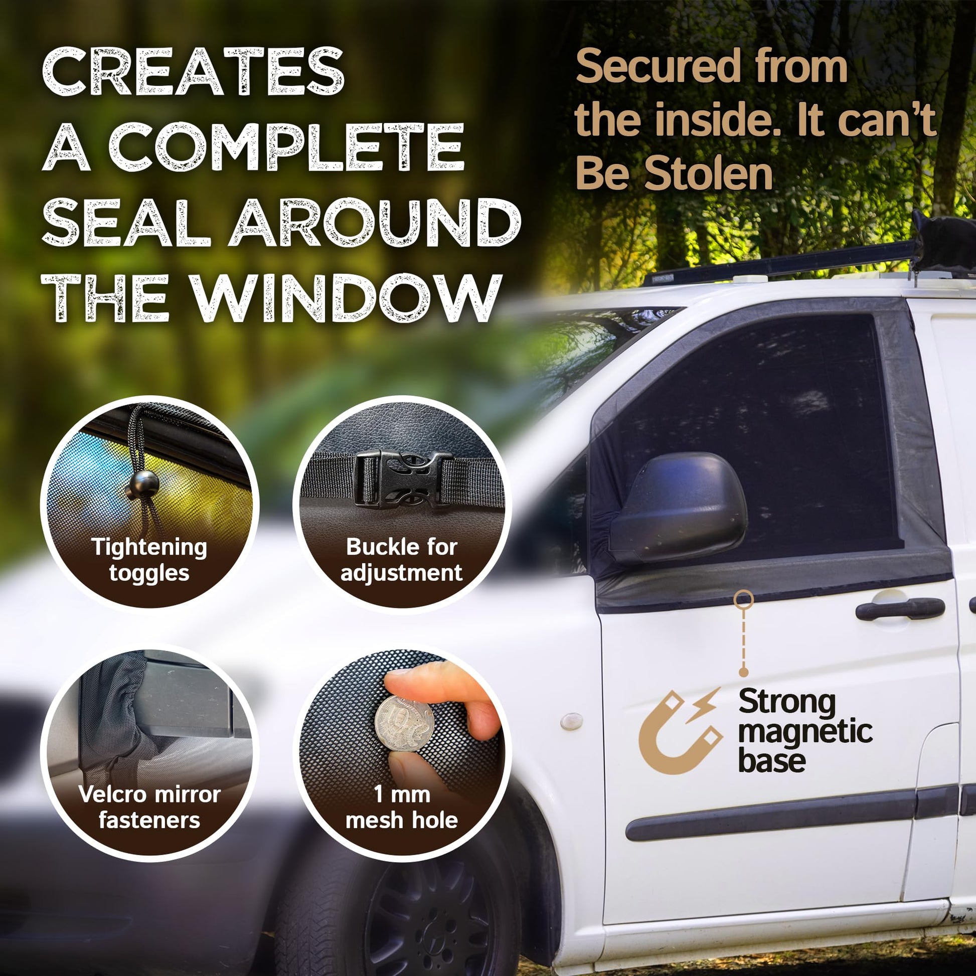 • [KEEP BUGS OUT WITH PREMIUM MATERIAL] - Keep your van completely bug proof with our premium van and car window bug screens. Increase ventilation and keep mosquitoes, midges, flies, no-see-ums, and more out. Now, you can finally sleep with the windows down!