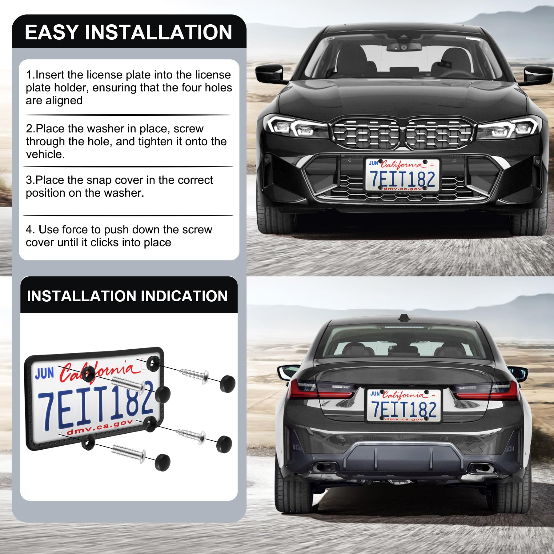 • Easy to intall: All you have to do is to set your license plate into the recessed front side of the frame, add the frame cover, then install the entire ensemble onto your car with the provided hardware.