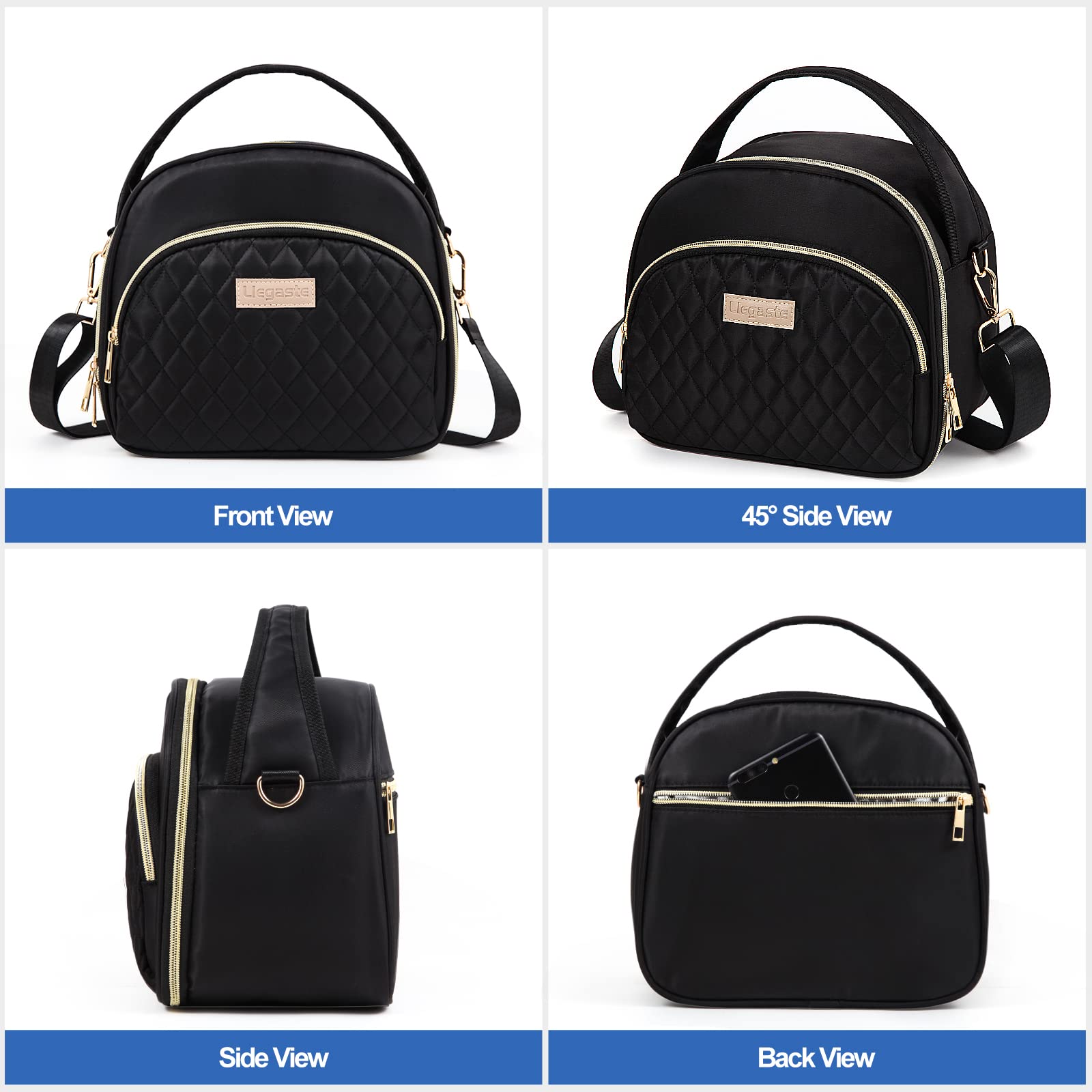 LLEGASTE Black Cute Insulated Lunch Tote Bag for Women Work,Reusable Adult Lunch Box for Women, Stylish Wide Open Cooler Bag for Work(Black)