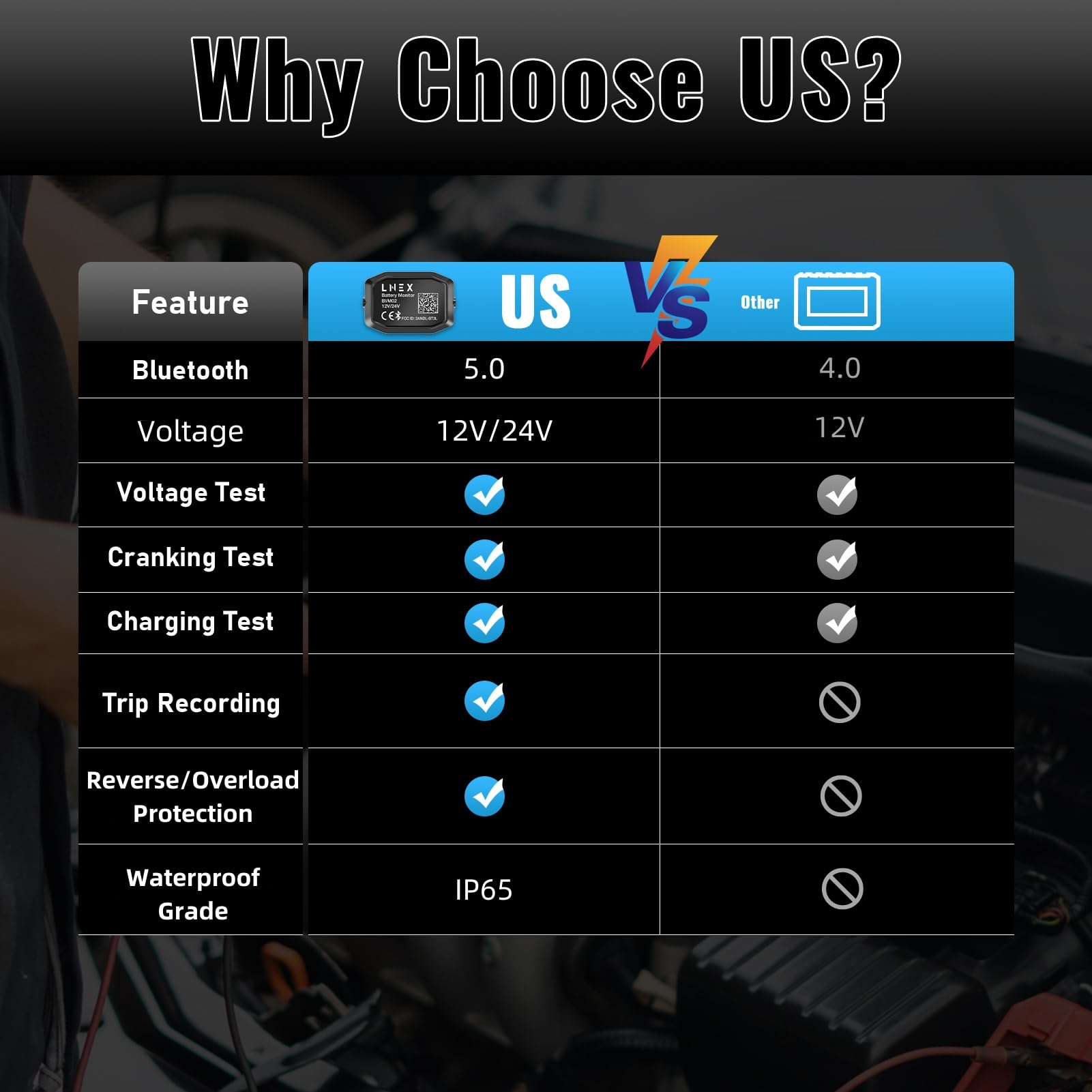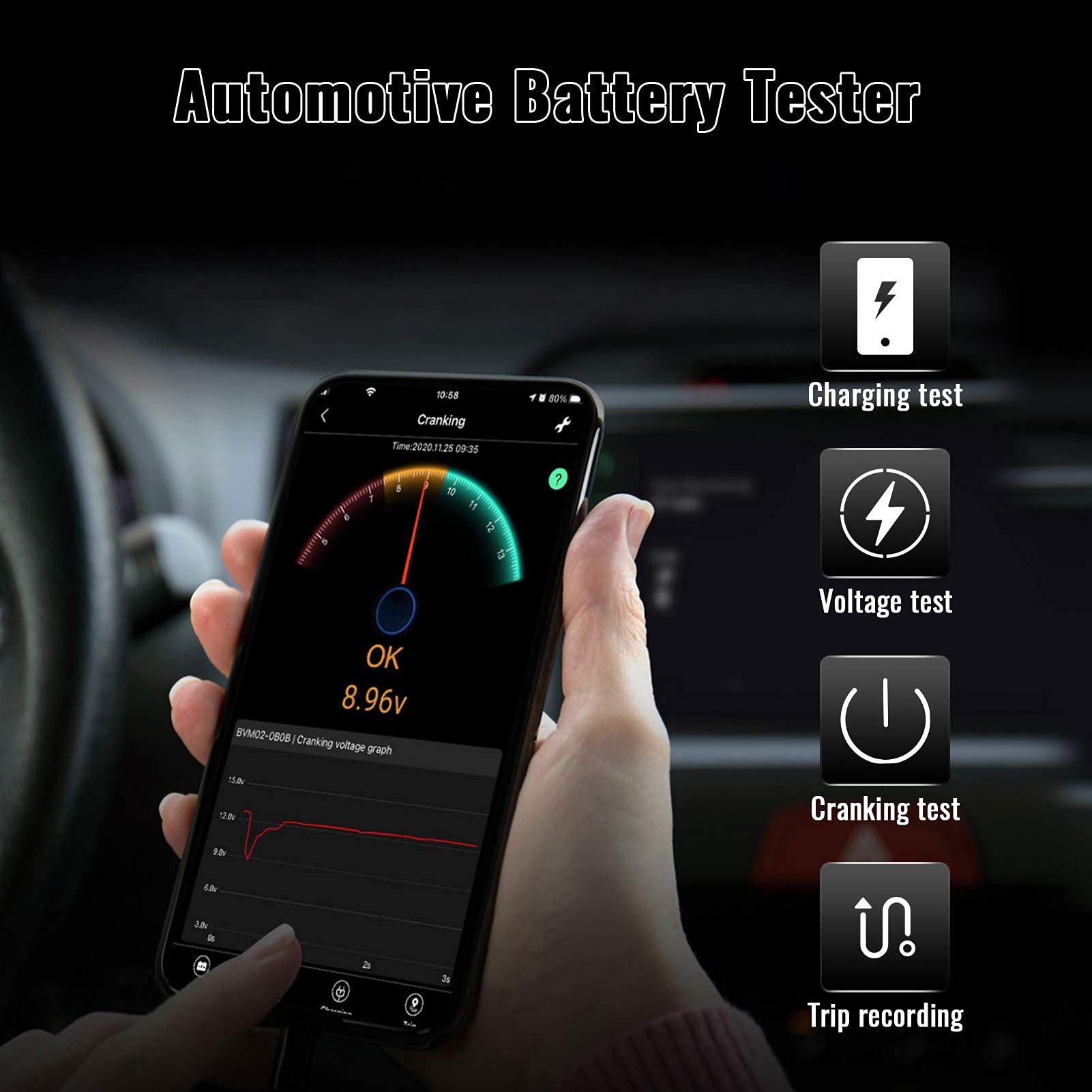 • 🌞Safe Protection & Abnormal Alarm:Our automotive battery tester owns safety technology including Short-circuit protection,reverse polarity protection, Protect you from wrong operation and keep your safety. As well, Our Wireless battery monitor can monitor batteries remotely, you can set battery level alarms so you know before killing your battery.