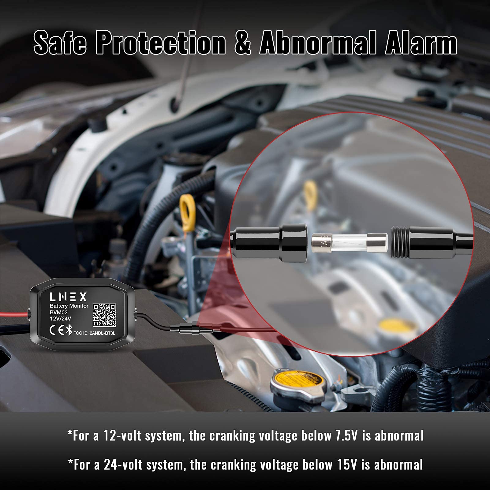 LNEX Bluetooth Battery Monitor,Wireless 12V 24V Automotive Battery Load Tester with Charging & Cranking Test & Alarm for Solar Power Systems/RVs/Motorcycles/Boats/Cars/Trucks