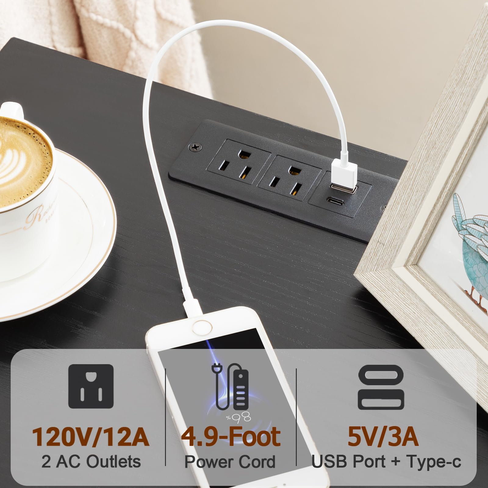 • LED Nightstand with Charging Station: In order to meet more charging needs, this night stands adopts the latest plug-in design. Our end table with usb ports and outlets has 2 outlets and 1 usb port and 1 type-c port which can totally charge your lamps, phones, tablet at the same time, No need to go outside to find an outlet