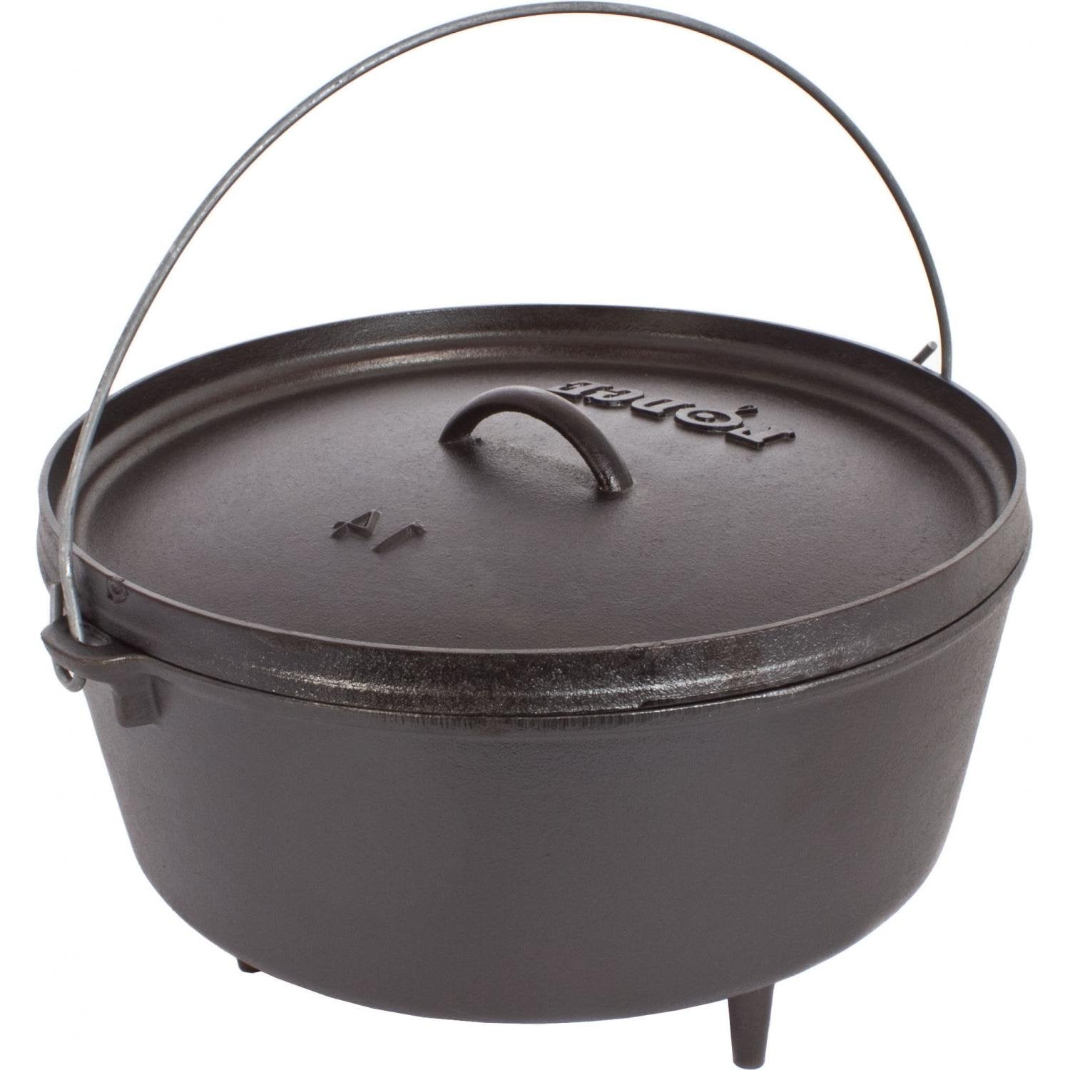 Details: Lodge Logic 10-Quart Cast-Iron Camp Dutch Oven with Iron Lid Multi-Functional CookwareThe Lodge portable 'camp stove' is the pot that does it all. The flanged lid holds hot coals and inverts for use as a griddle. The integral legs allow the oven to sit perfectly over hot coals. From colonial hearth fires to the campfires of Lewis and Clark, cast iron camp ovens fed the colonists, helped tame the wilderness, and did their share in settling the American West. Cast iron cookware has long been treasures as sought after heirlooms, so much so that, when Lewis and Clark returned from their journey west, their trusted cast iron pots were among the few items making it back to civilization. Like whiskey and tall tales, Lodge Cast Iron improved with age. There are few companies who can boast that products they made over 100 years ago remain in use today, and are still in high demand. You just won't find anyone who knows camp oven cooking like Lodge. Our camp ovens have proven themselves with avid outdoorsmen and patio pioneers from Tennessee to Tokyo. When you create a meal in Lodge Cast Iron, you create a memory that lasts a lifetime. Many of the pieces of cast iron cookware made in the Lodge Foundry over a century ago remain in use today. The Lodge Cast Iron Dutch Oven is a multi-functional cookware that works wonders with slow-cooking recipes. It comes with a tight-fitting lid that helps lock in nutrition and flavor. This pre-seasoned Dutch Oven works like a charm right out of the box. Made of cast iron, this Dutch Oven evenly distributes heat from the bottom through the sidewalls. Also, it retains heat better so your delicious meal remains warm for a long time. Sporting a stylish black color, the cast iron Dutch Oven looks good in most kitchens and it doubles up as an excellent source of nutritional iron. It features loop handles for convenient handling and the oven is easy to clean and maintain. A simple Cast-Iron Dutch Oven, like the one your grandmother used, still ranks as one of the best cooking utensils ever made. It gives you a nearly non-stick surface, without the possible harmful fumes generated by preheating chemically treated nonstick cookware. Many of the pieces of cast iron cookware made in the Lodge Foundry over a century ago remain in use today. Legs Allow Oven to be Set Over Hot CoalsFeatures: Made of cast ironPre-seasoned and ready to useMulti-functional cookwareVirtually non-stick surfaceBrutally tough for decades of cookingEasy to clean-hand wash, dry, rub with cooking oil Detailed Highlights: Superior Cooking Performance Tightly controlled metal chemistry and exacting mold tolerances deliver consistent quality for even heating and superior cooking performance. Hang Over Hearth or Campfire Heavy gauge wire bale can be used for hanging the oven over the hearth or campfire. Sturdy Legs Three integral legs allow the oven to be perfectly spaced over hot coals. Snug Fitting Lid Flanged to contain hot coals on top so the oven can be used for baking, stewing, and roasting. The versatile lid can be inverted for use as a griddle. Multi-Functional Cookware The right tool for searing, sauteing, simmering, braising, baking, roasting, and frying. Made of Cast-Iron Cast-Iron is a form of cookware developed over a millennia ago remains as popular today as when it was used to prepare meals hundreds of years ago. Cast Iron is one of only two metals compatible with induction stovetops. Unparalleled in heat retention and even heating. Can Be Used With a Variety of Heat Sources At home in the oven, on the stove, on the grill or over the campfire. Skillet may be used on various heat sources including gas, electric and induction. Seasoned cast iron can also be used on the grill or open fire and coals for camp cooking. Begin heating cookware on low and slowly bring heat up to medium or medium/high. Always remove cookware from the stovetop after cooking. Pre-Seasoned Seasoned for a natural, easy-release finish that improves with use. Seasoning is a necessary step in using cast iron cookware. Oil is baked into the pores of the iron at the foundry to prevent rusting and to eventually provide a natural, non-stick cooking surface. Unlike synthetically coated cookware, it is possible to restore the cooking surface of cast iron. Lodge uses a proprietary soy-based vegetable oil to season our cookware. The oil contains no animal fat or peanut oil. The seasoning is functional application and slight inconsistencies may appear in the seasoning finish. The inconsistencies will not affect cooking performance. Easy to Care for Easy: hand wash, dry, rub with cooking oil. It is very important to replenish the seasoning of your cast iron cookware by applying a thin layer of oil after each cleaning. Seasoning is an on-going process. The more you use cast iron, the seasoning is improved. Superior Cooking PerformanceUsing Your Lodge Cast Iron Rinse with hot water (do not use soap), and dry thoroughly. Before cooking, apply vegetable oil t