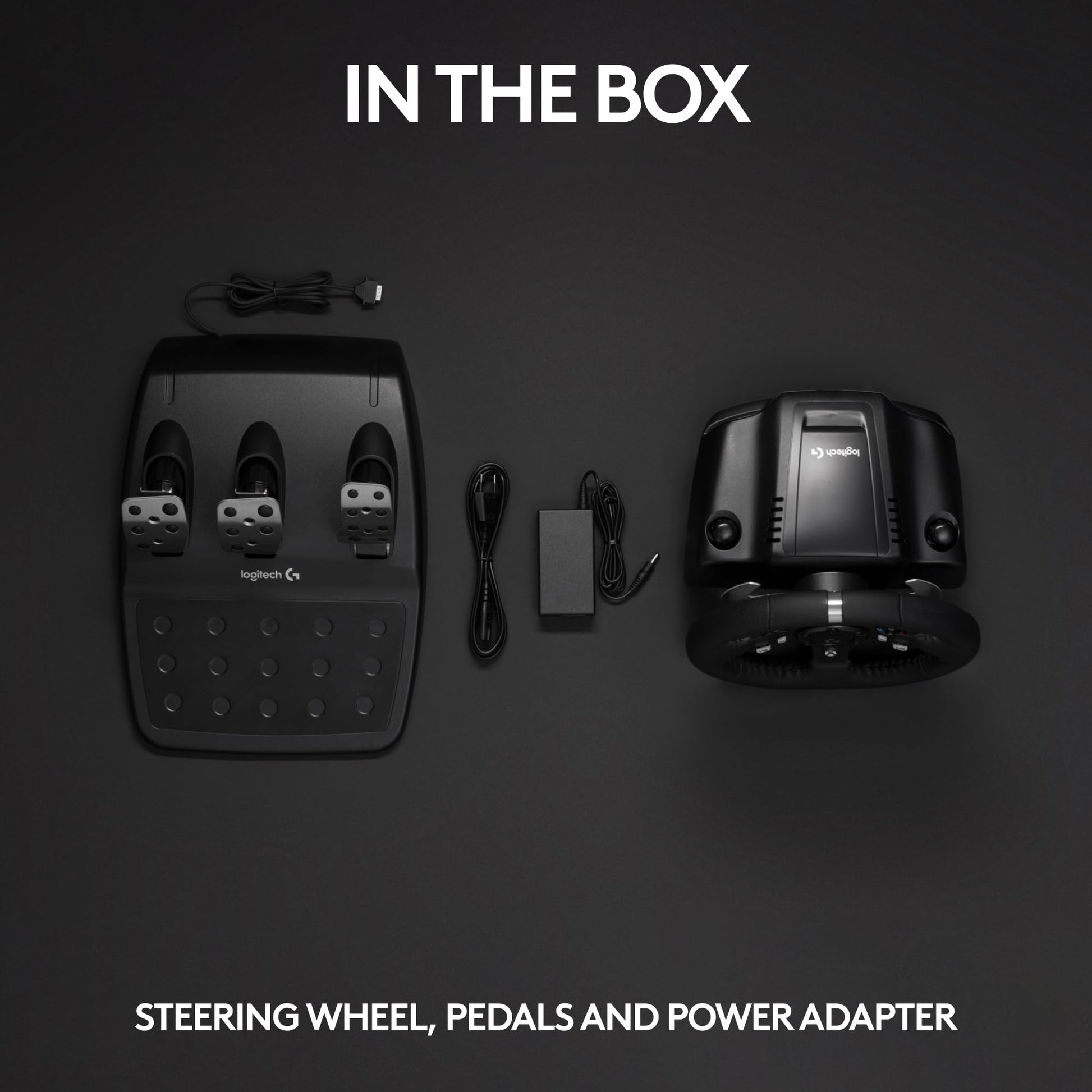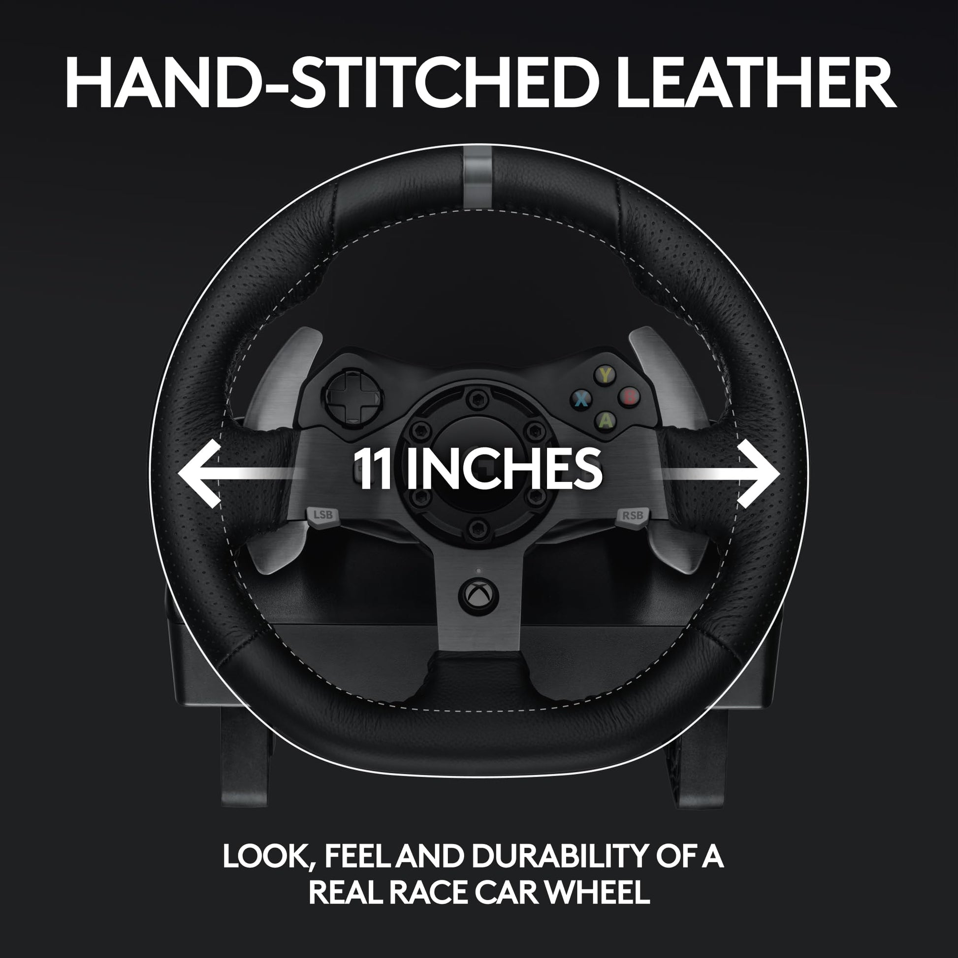 Details: Works with Xbox Series X|S, Xbox One™ and PC G920 Driving Force Racing Wheel is designed for the latest Xbox Series X|S, Xbox One™ and PC racing game titles. Add Driving Force to your controller selection and you may never want to race with a regular controller again. Realistic Force Feedback G920 Driving Force is engineered with a dual-motor force feedback mechanism that is designed to realistically simulate the feel of your tires on turns and terrain. With anti-backlash helical gears modeled after the gearing used in car transmissions, you get exceptionally smooth, quiet and precise steering action. Easy-Access Game Controls The D-Pad, buttons and stainless steel paddles shifters are conveniently located on the wheel for seamless access to all your racing controls. For even greater control, add on the optional 6-speed manual Driving Force Shifter attachment, sold separately. Responsive Pedal Unit The separate pedal unit enables a more realistic body position for driving, so you can comfortably brake, accelerate and change gears like you would in an actual car. The nonlinear brake pedal mimics the performance of pressure-sensitive brake systems for a more responsive, accurate braking feel. Quality Construction G920 Driving Force is built top-to-bottom to handle the stress of racing, from solid steel ball bearings and stainless steel paddle shifters, to built-in clamps and bolt points that keep the wheel securely mounted to your rig. High-quality, hand-stitched leather provides the grip and feel of a high-performance racecar wheel. 6-Speed Shifter Compatible with 6-Speed Manual Shifter Attachment (Sold separately).