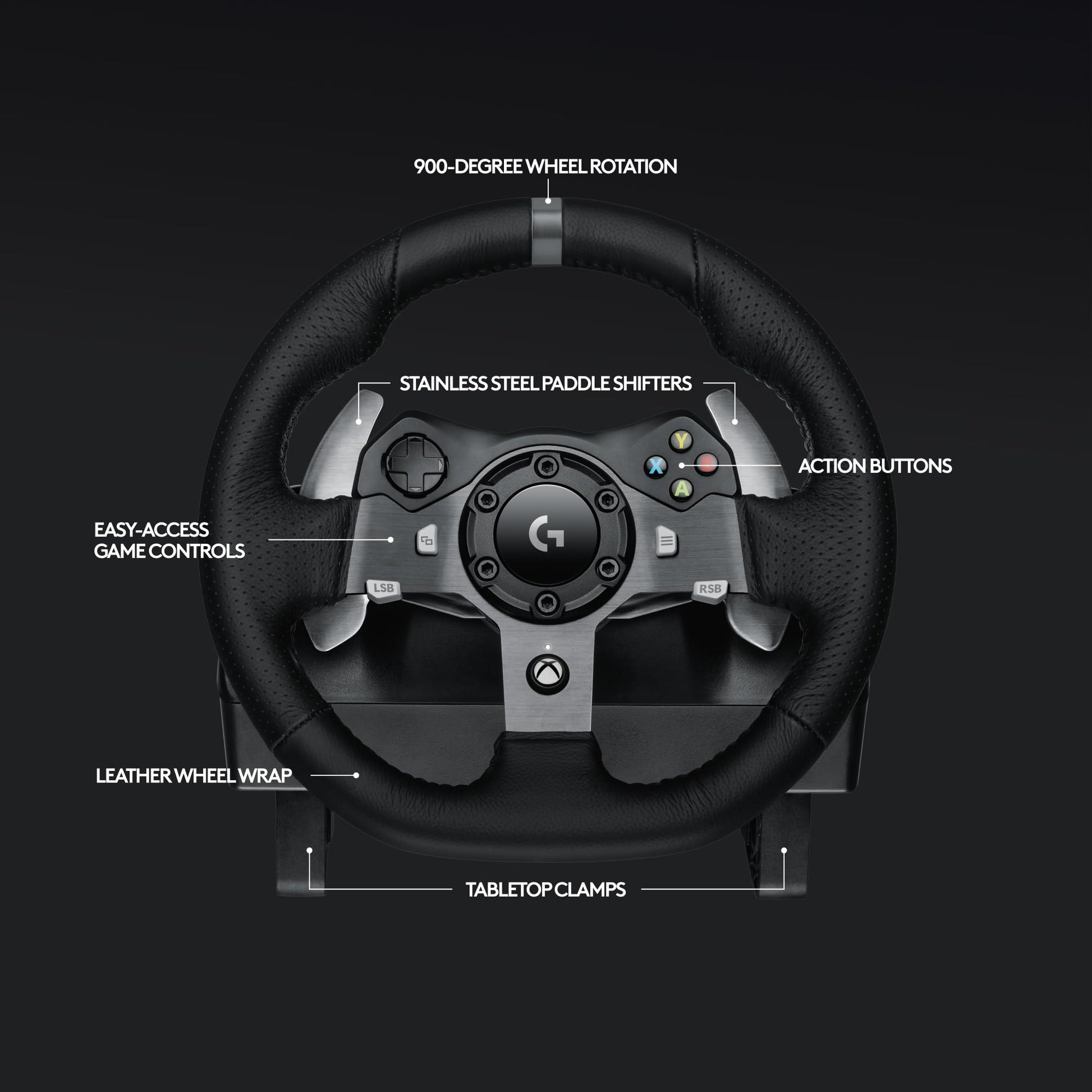 Logitech G920 Driving Force Racing Wheel and Floor Pedals, Real Force Feedback, Stainless Steel Paddle Shifters, Leather Steering Wheel Cover for Xbox Series X|S, Xbox One, PC, Mac - Black