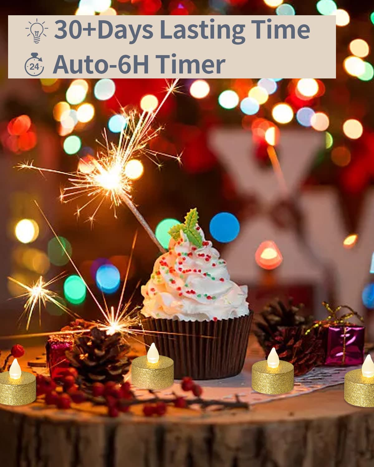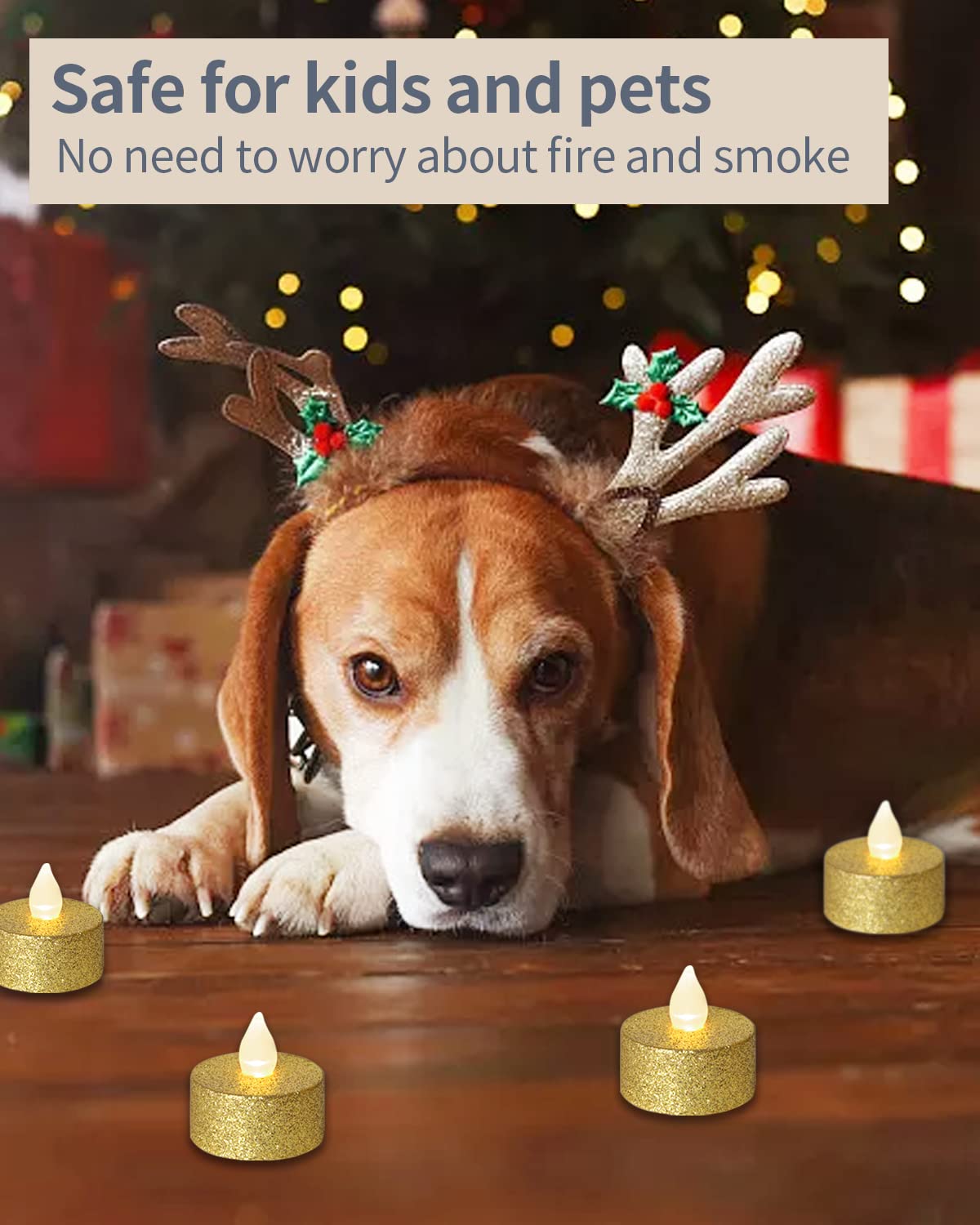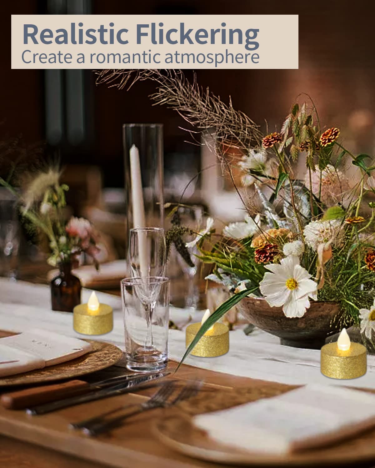 • What You Get: 24 Pack* Gold LED Tea Lights(Size: 1.5"(D)x1.5"(H), guarantee of solving your problem within 24 hours