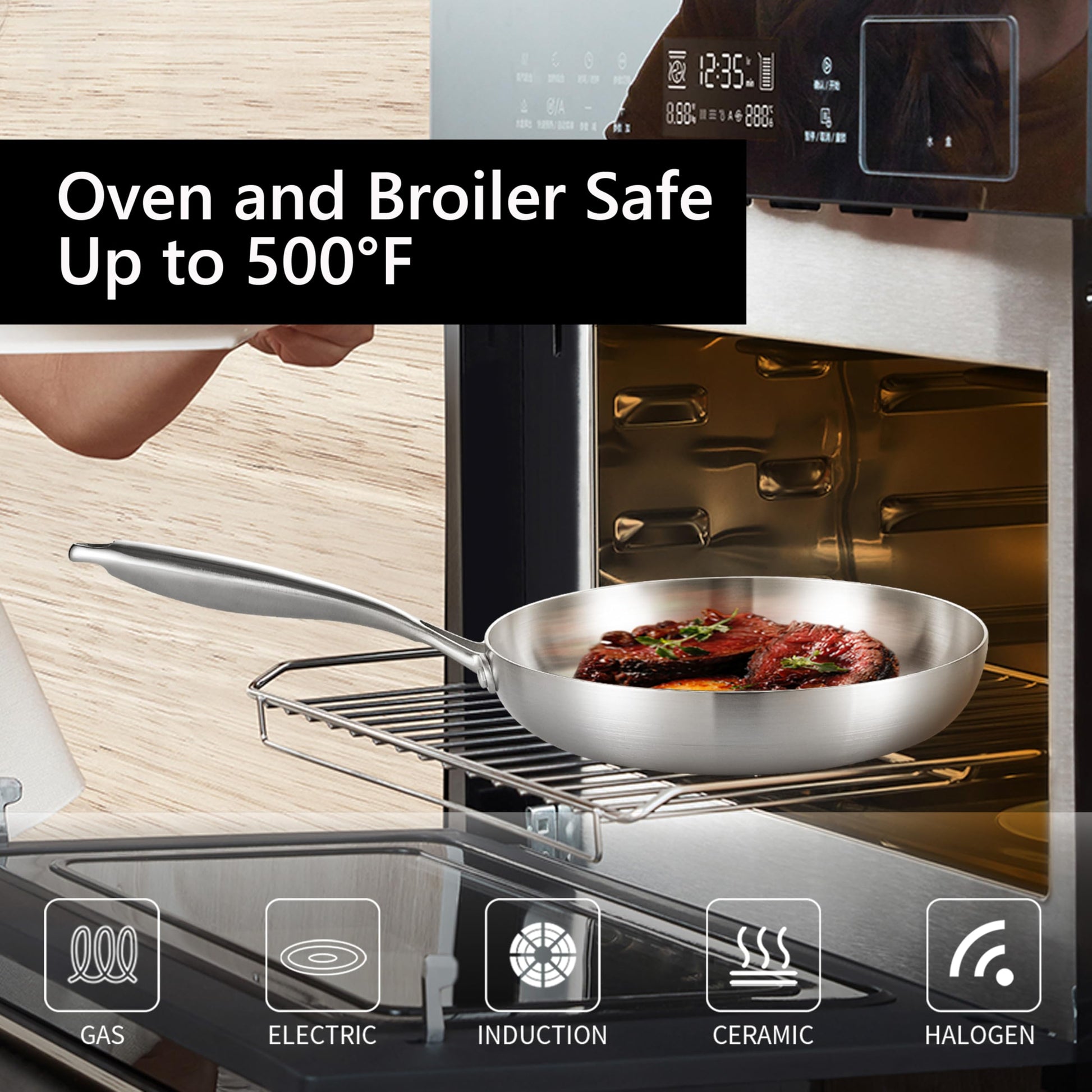 • Durable & Easy Maintenance: Premium tri-ply construction ensures compatibility with allstovetops and oven-safe up to 500°F.Durable design allows for easy cleaning and is dishwasher-safe, perfect for busy professionalsand families seeking convenience