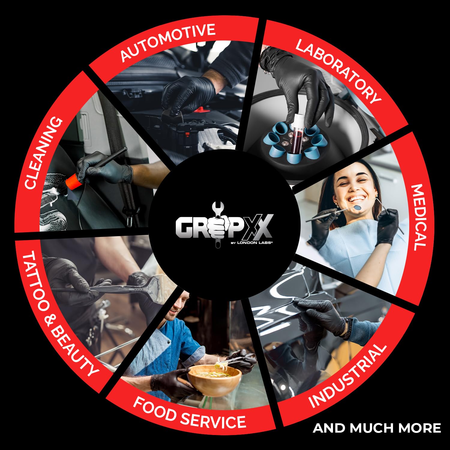 London Labs Heavy Duty 6 Mil Black Nitrile Gloves - Disposable, Latex & Powder Free | Mechanic, Food Prep & Tattoo | Rubber Gloves for Cooking, Cleaning & Household | Pack of (100)