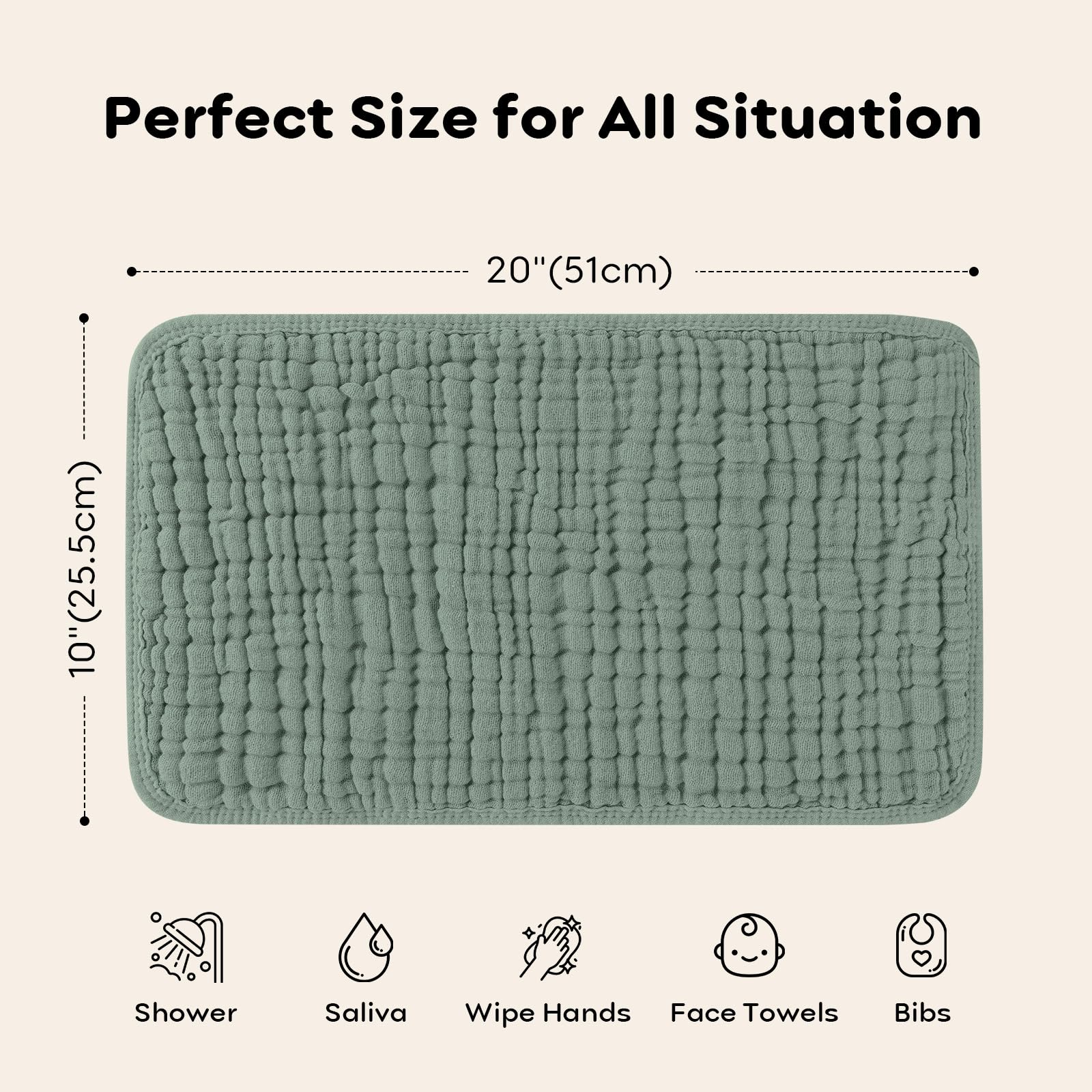 • Multi-Use & Easy Care: Use as a burping cloth, baby washcloth, drool bib, reusable wipe, or even a changing pad cover. Machine washable, quick-drying, and durable—made to handle daily baby messes with ease.