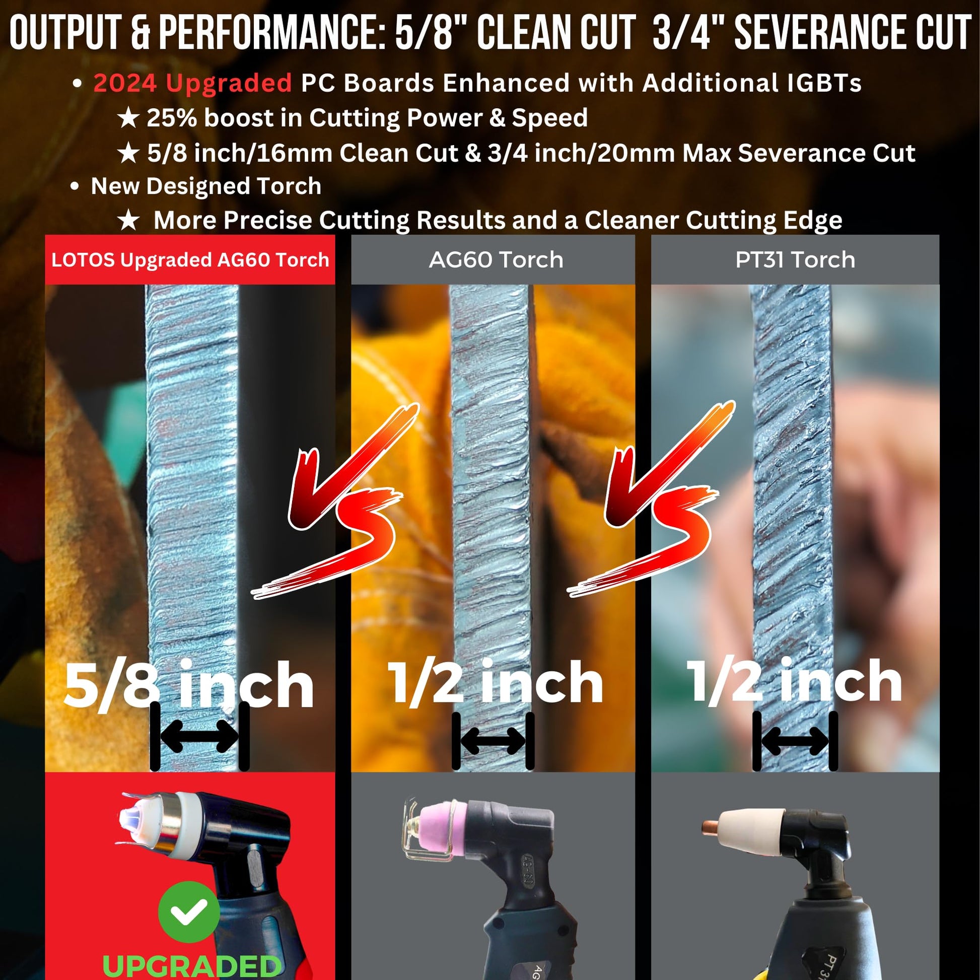 โ ๐๐๐๐ ๐๐ฉ๐ ๐ซ๐๐๐๐ ๐๐จ๐๐๐ฅ: 5/8-inch (16mm) Clean Cut, 3/4-inch (20mm) Severance Cut, Newly Upgraded PC board, Remarkable 25% Increase in Cutting Power compared to other standard 50-amp plasma cutters.