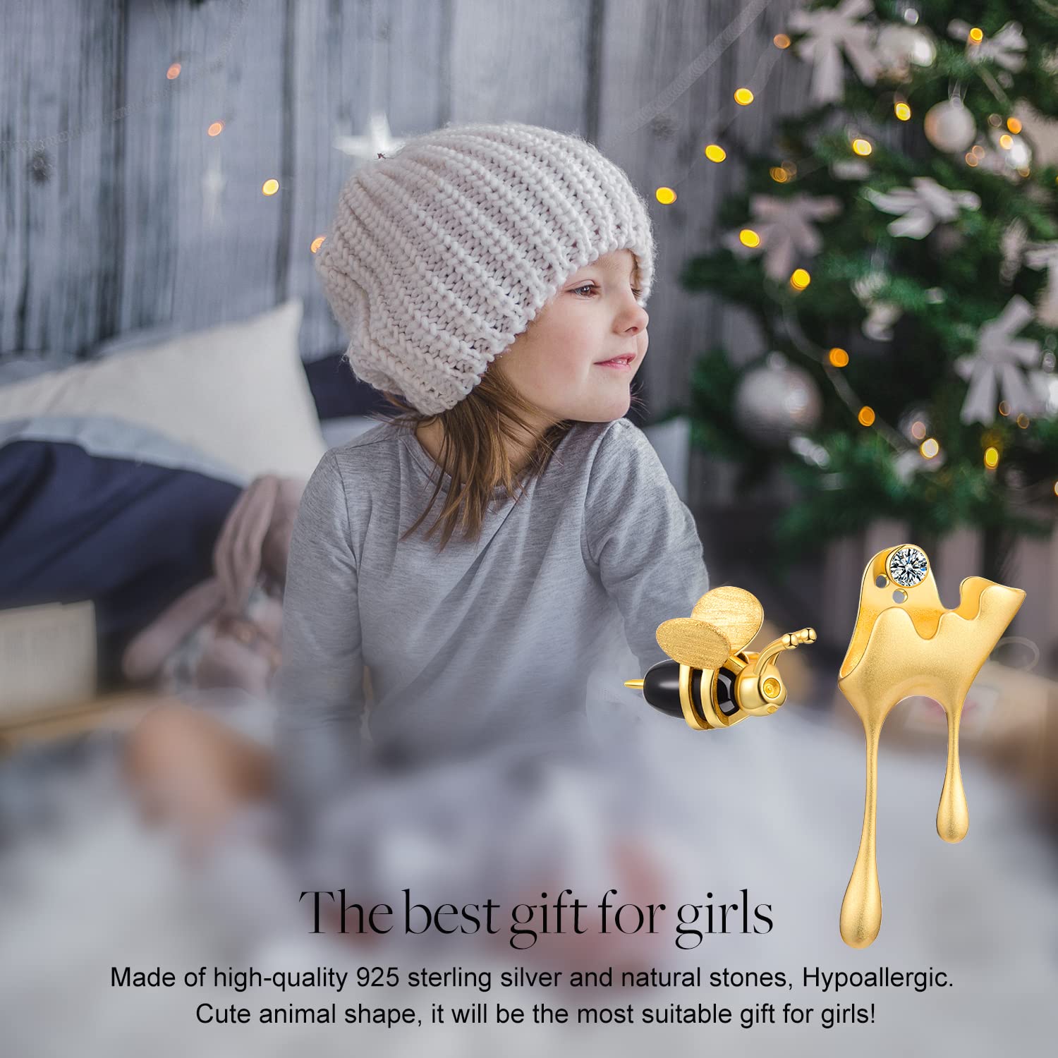 • ♥ Unique Design ♥ "Bee and Dripping Honey Stud Earrings" find inspiration from natural world, wearing this handmade and unique design s925 silver stud earrings makes women with unique and noble elegant temperament.