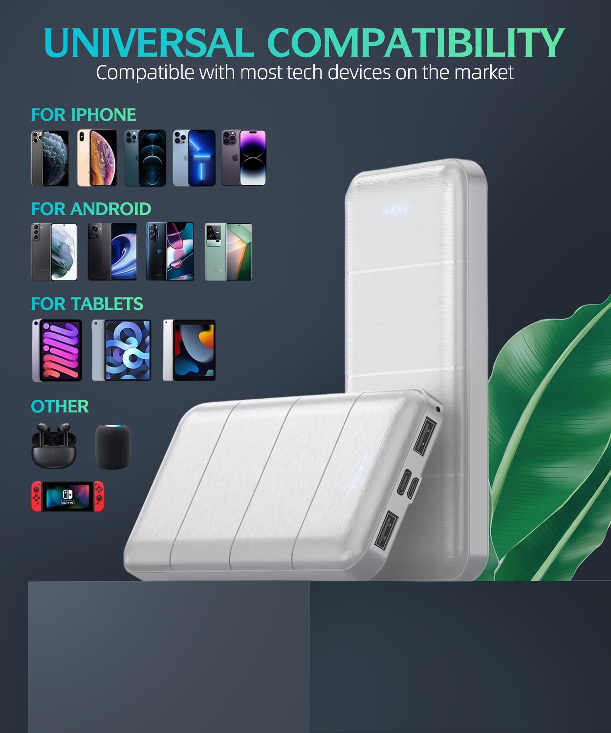 • Power bank bulit-in Intelliegent Controlling IC can automatically identify and is universally compatible with all products, It switches the corresponding current and voltage to charge the device. Also IC can convert fluctuating current into stable current, It can effectively prevent your power bank overcharge, overvoltage, overcurrent and short circuit.Bring you the safe using experience.