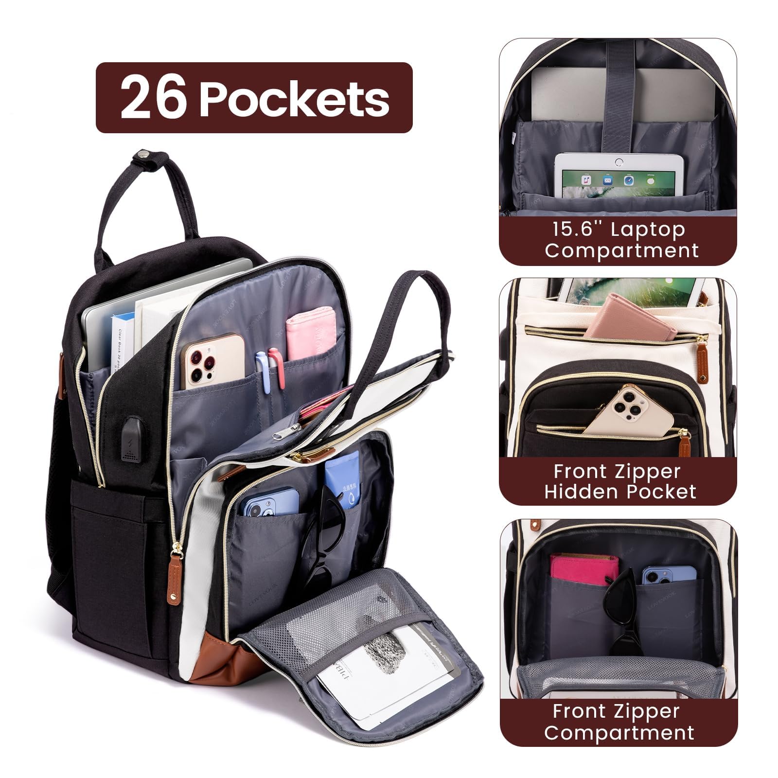 LOVEVOOK Backpack for Women, Fits 15.6 Inch Laptop Bag, School Backpacks, Fashion Travel Work Anti-theft Bag, Business Computer Waterproof College Backpack Purse, Beige-Black-Brown