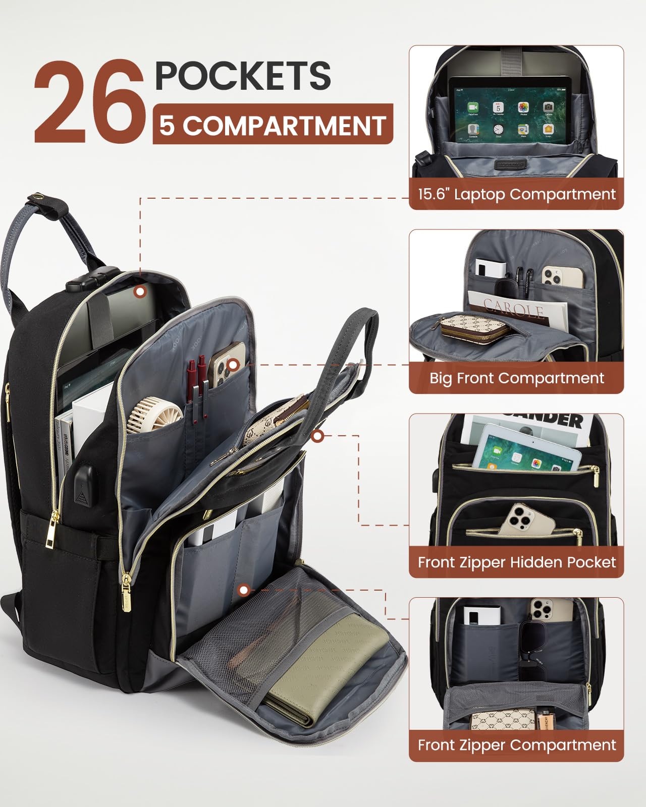 • 【LOTS OF STORAGE SPACE&POCKETS】The laptop backpack has a separate laptop compartment hold 15.6 Inch laptop and a ipad compartment. The anti-theft backpack has a spacious packing compartment that can all roomy for daily necessities,tech electronics accessories. Front compartment with many pockets, an anti-theft pocket on the back and two water bottle pockets on the side, make your items organized and easier to find.