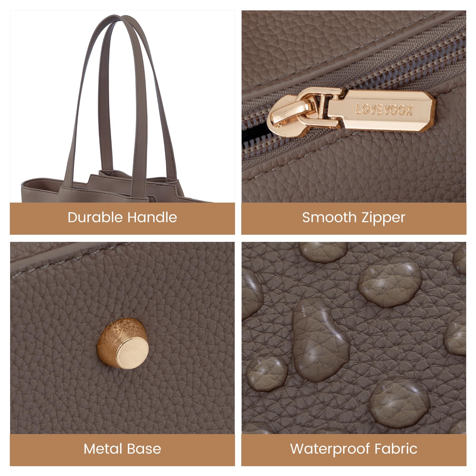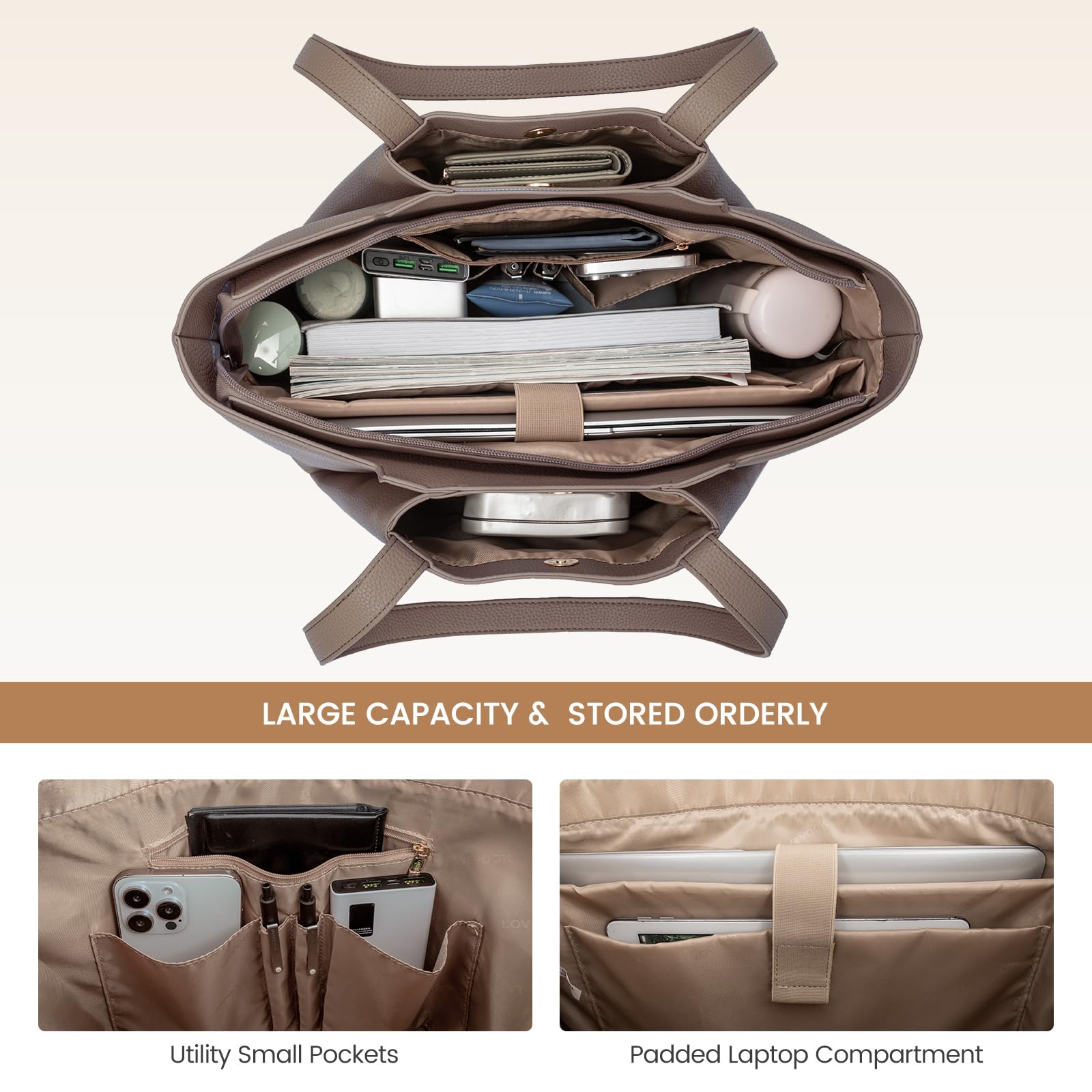 LOVEVOOK Laptop Tote for Women - 15.6 Inch Faux Leather Laptop Bag with Clutch, Large Capacity Office Purse Computer Briefcase for Casual Business Travel,Dark Khaki