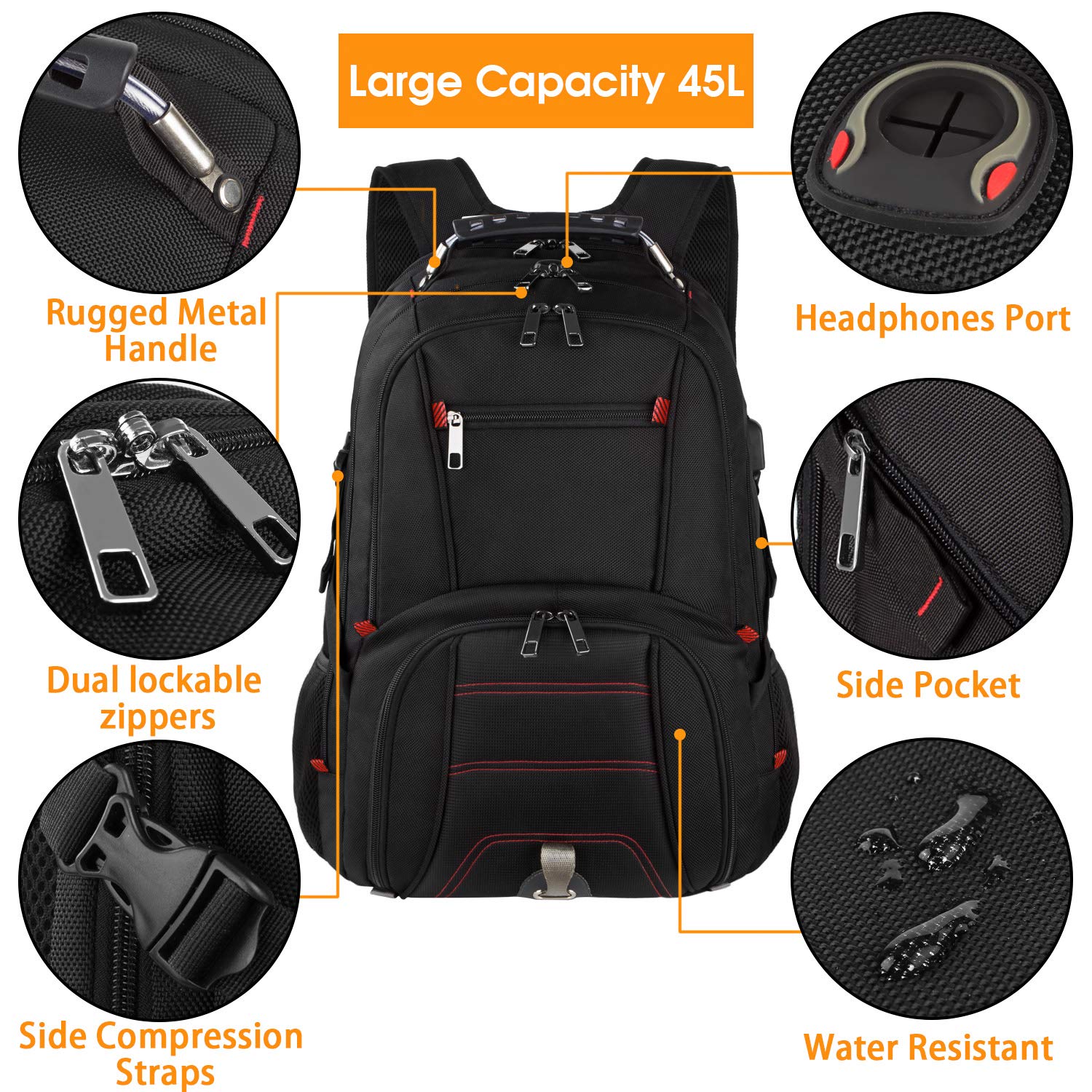 Travel Laptop Backpack, Extra Large Backpack for Men Women with USB Charging Port, TSA Friendly Heavy Duty Big Business Computer Bag Tech Backpacks Bag Fit 17 Inch Laptops, RFID Backbag