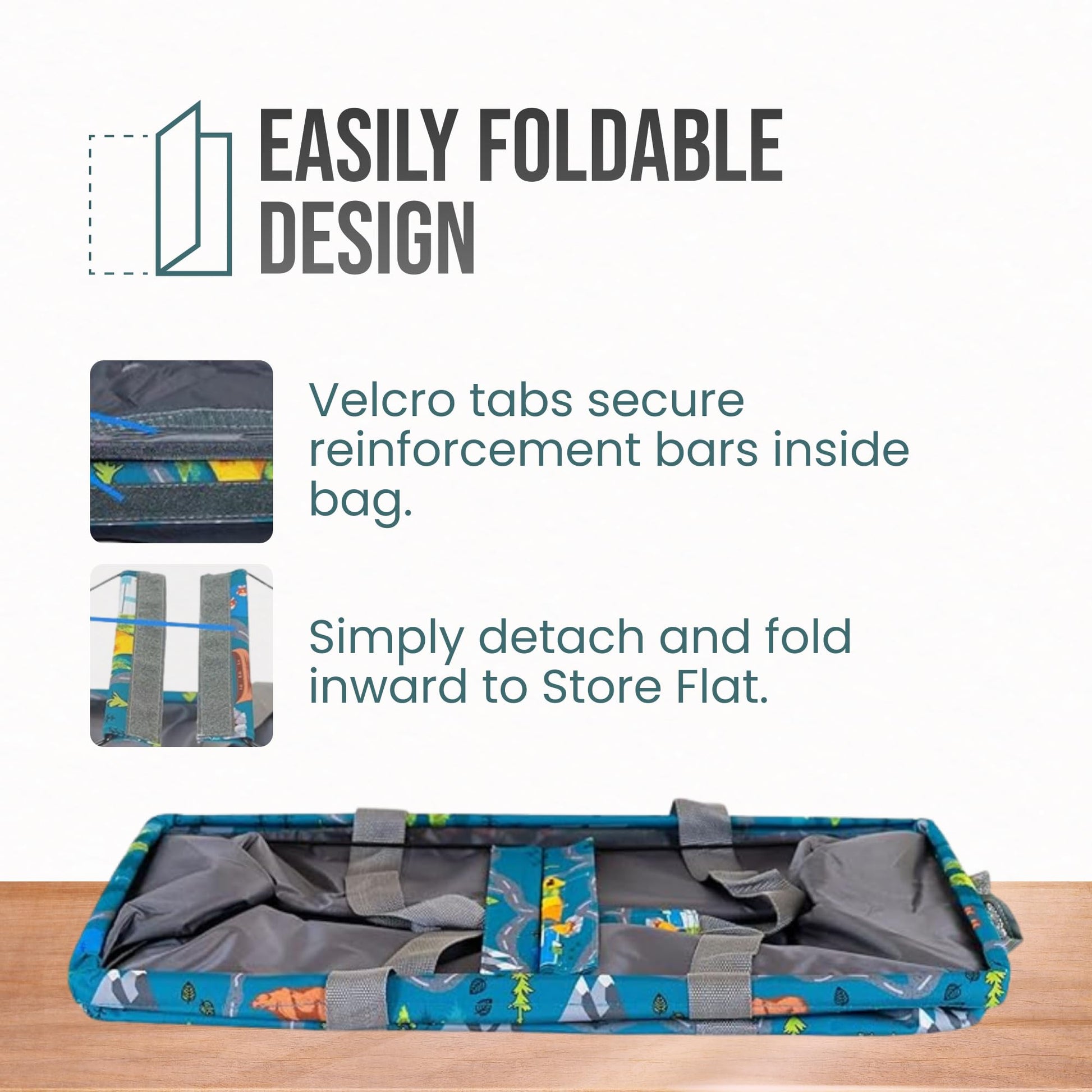 • Premium Quality - Made from durable water-resistant polyester with metal wireframe, it is light to carry and very durable. Quickly collapses with one long velcro strap on each interior side compared to two tiny flimsy velcro straps our competitors have. Will hold up to roughly 25 pounds of items in the bag.