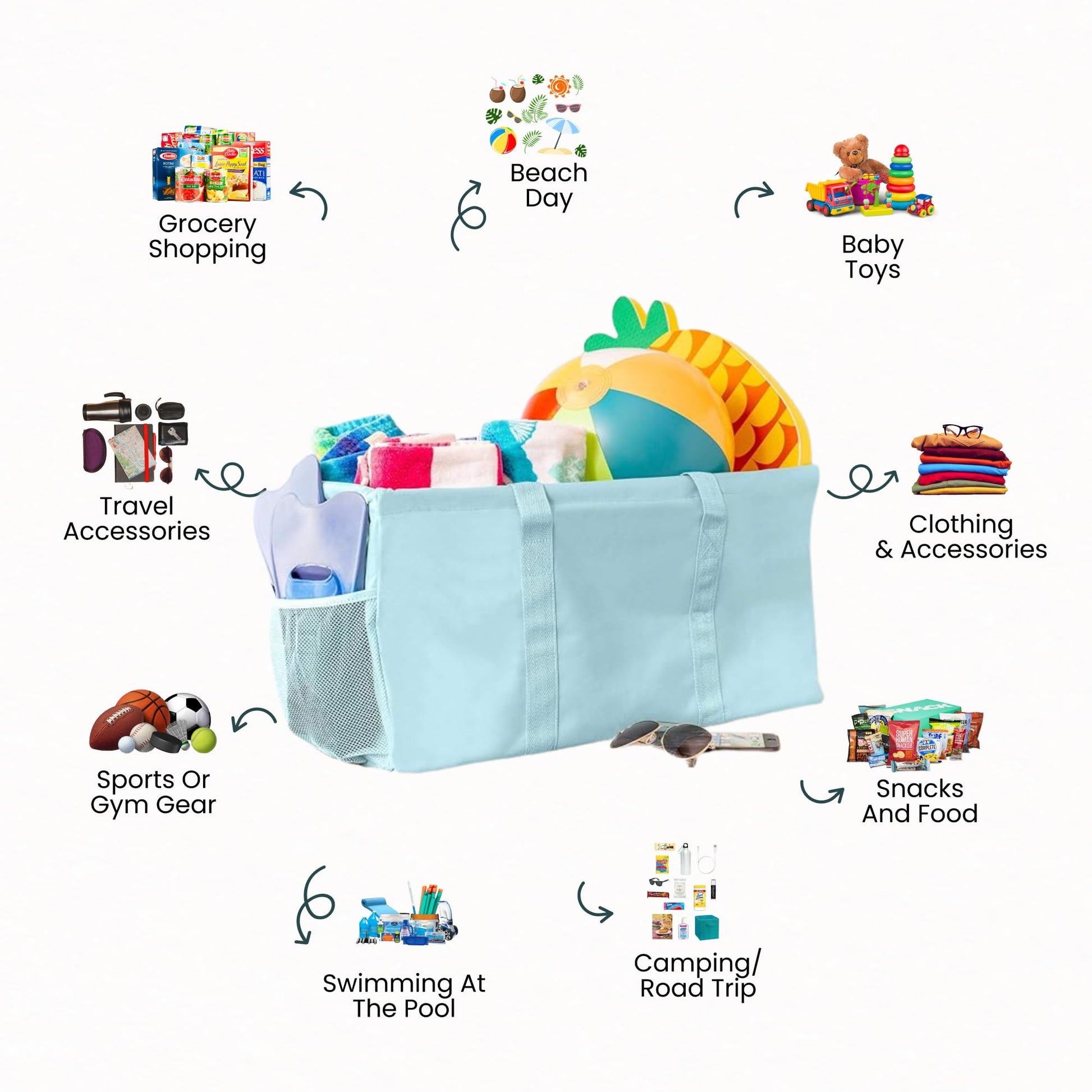 • Multi-Purpose Tote Bag - Perfect carry all tote bag with open top, multifunctional basket allowing for use at the beach, the pool, laundry, picnics, car trunk for grocery storage, or cleaning supplies