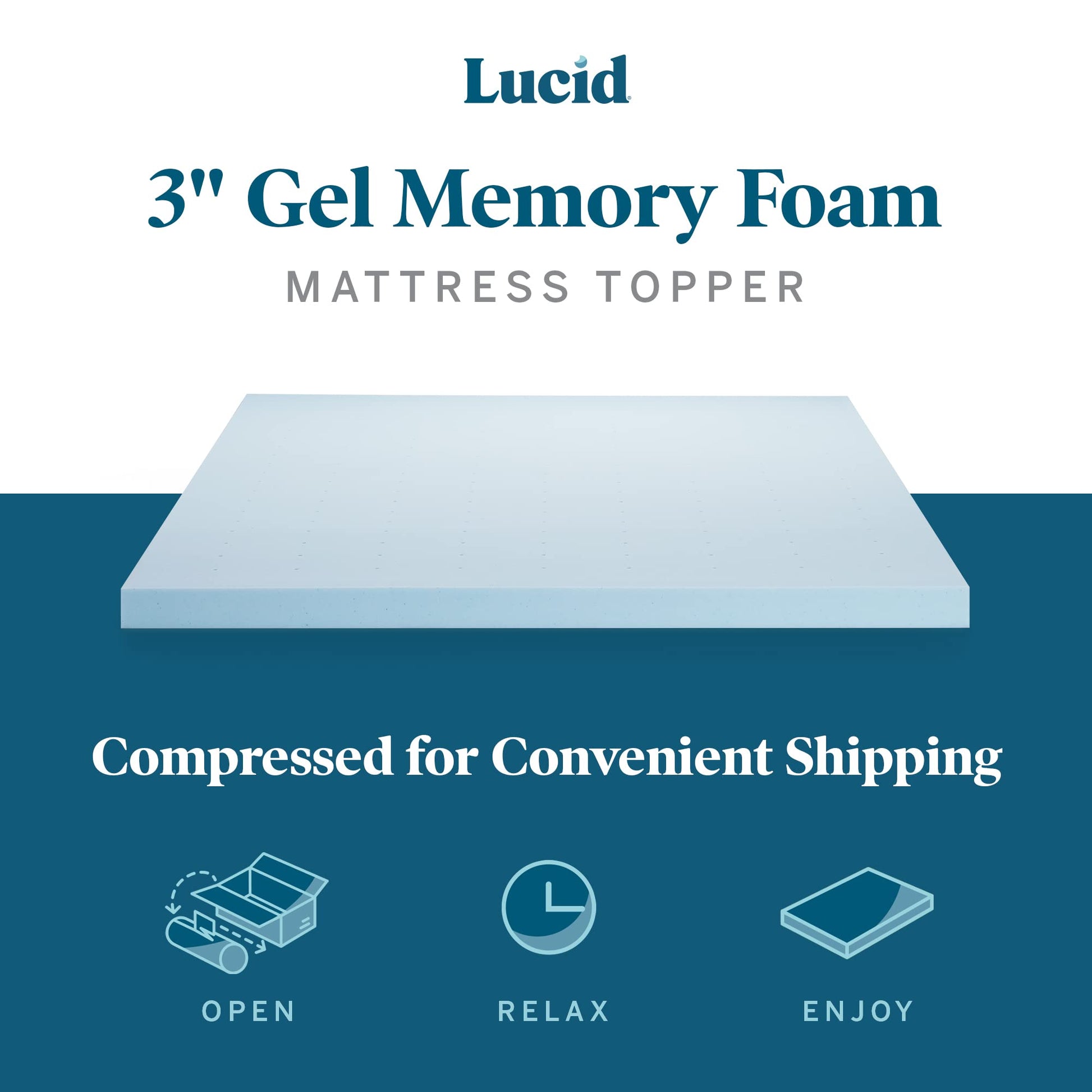 LUCID 3-inch Ventilated Gel Memory Foam Mattress Topper - Twin