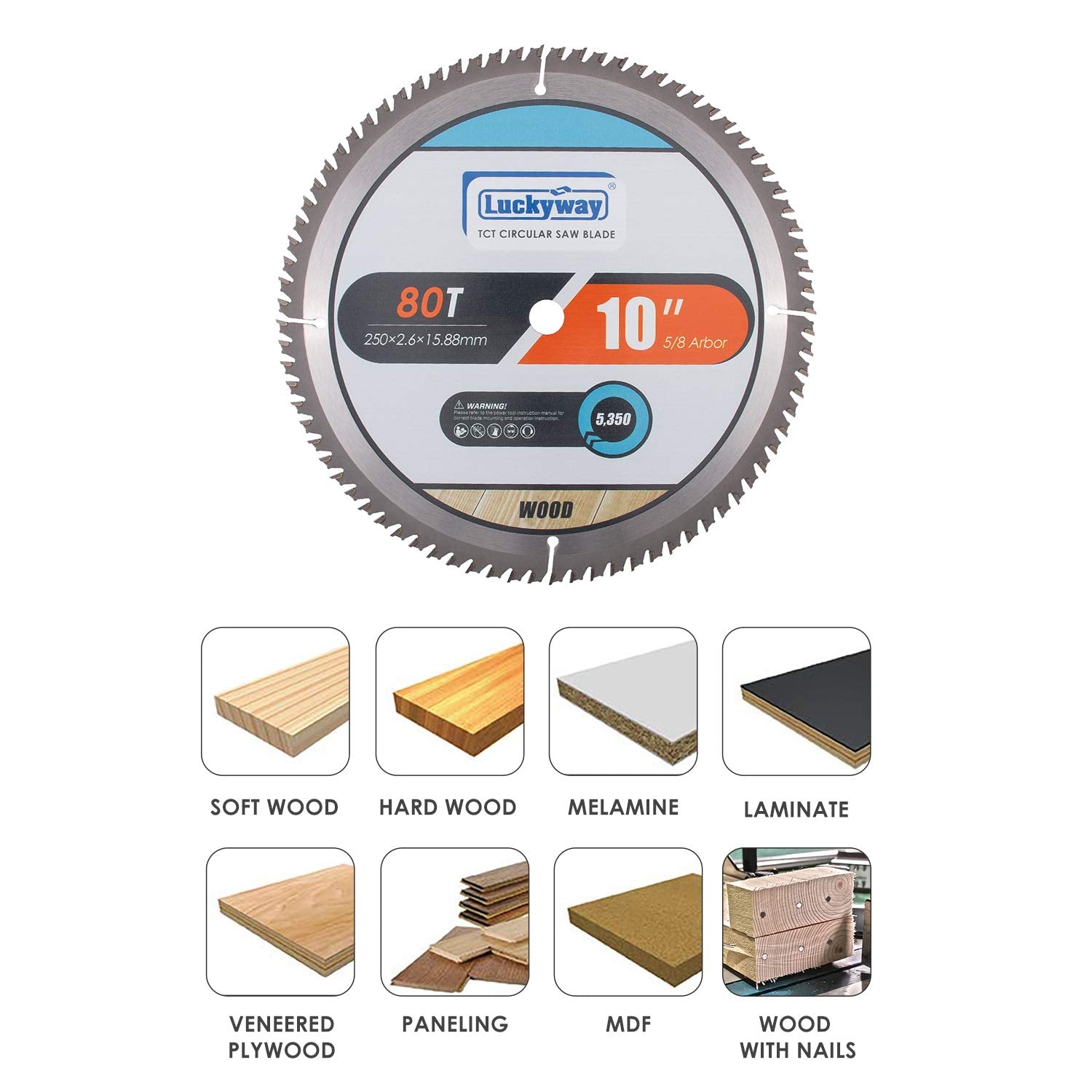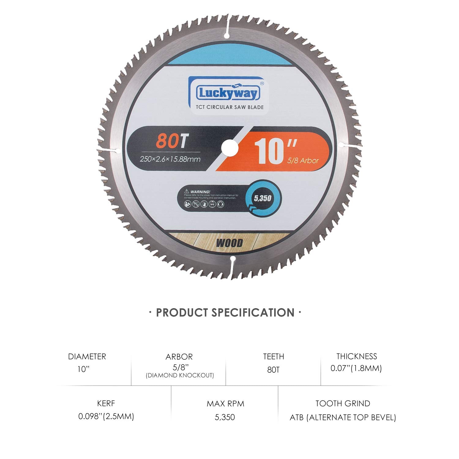 • DIMENSIONS - Includes 2-PACK 10 inch table/miter saw blade,80 Tooth, 5/8 inch arbor, 0.01"(2.6mm) kerf, MAX RPM 5350