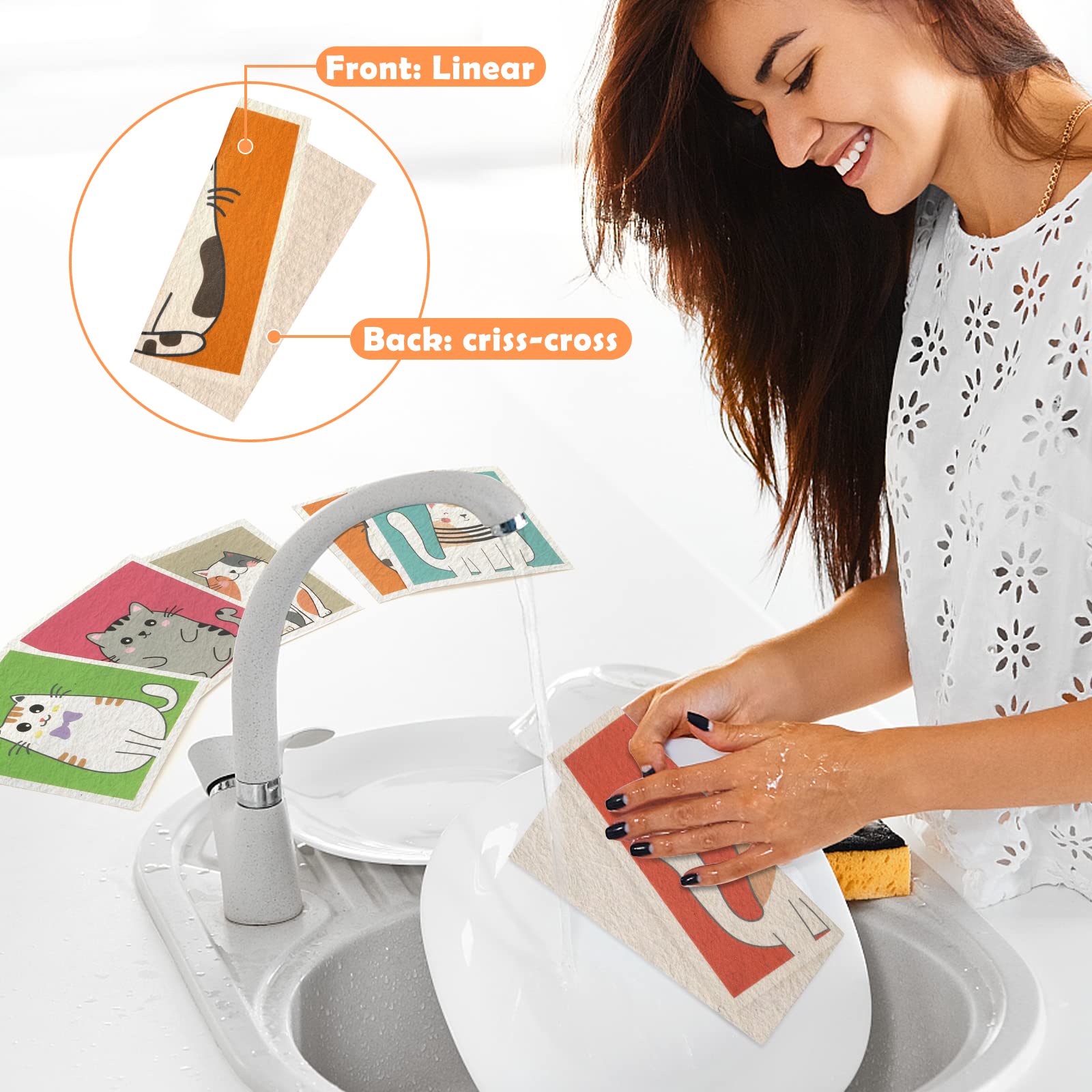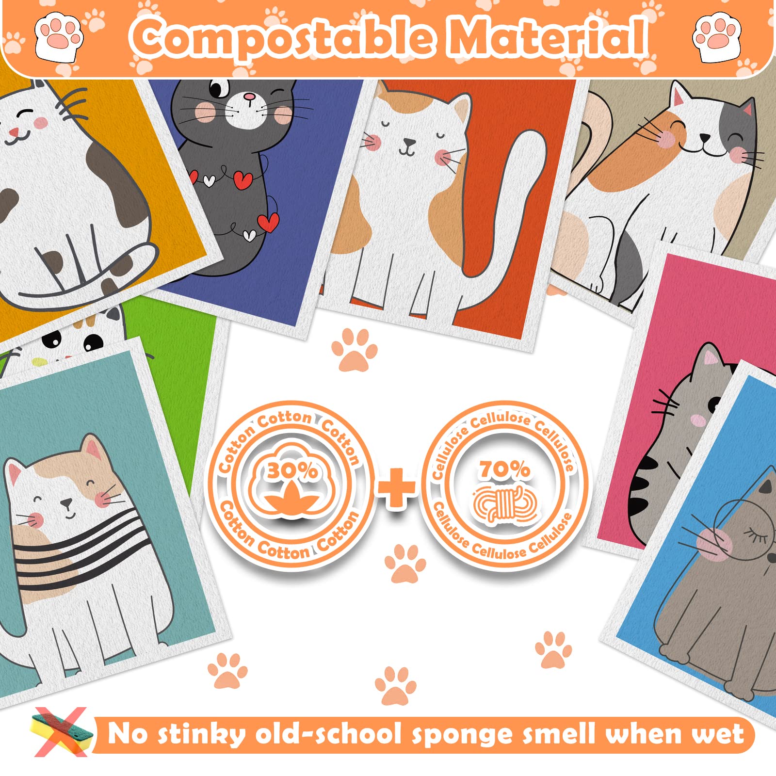 Lucomb Swedish Dish Cloths for Kitchen, 8 Pack Reusable Cleaning Cloth Absorbent Kitchen Towels No Odor Fast Drying for Home Wipes Dish Washing (Cute Cat)