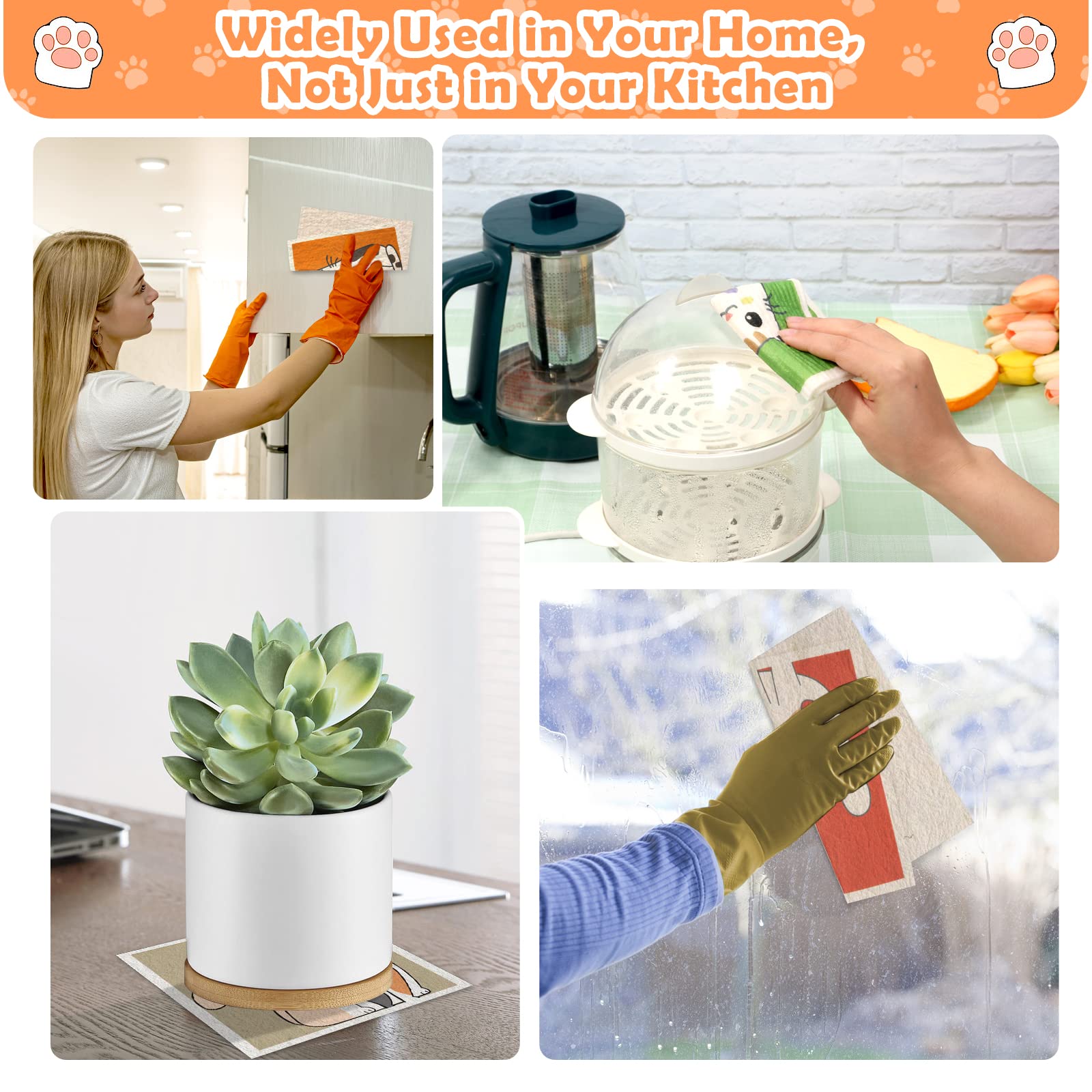 • ๐‘๐ž๐ฎ๐ฌ๐š๐›๐ฅ๐ž ๐Š๐ข๐ญ๐œ๐ก๐ž๐ง ๐ƒ๐ข๐ฌ๐ก ๐‘๐š๐ ๐ฌ Made from Wood Pulp + Cotton, breathable and washable, these reusable cloths/ sponges/ towels soak up much more than a regular towel dishrag which will not leave streaks on the countertops, and they soak up stuff like flour much more easily than a traditional rag, great absorbance, soft smooth enough not to scratch surfaces but strong enough to get up grease and crumbs.