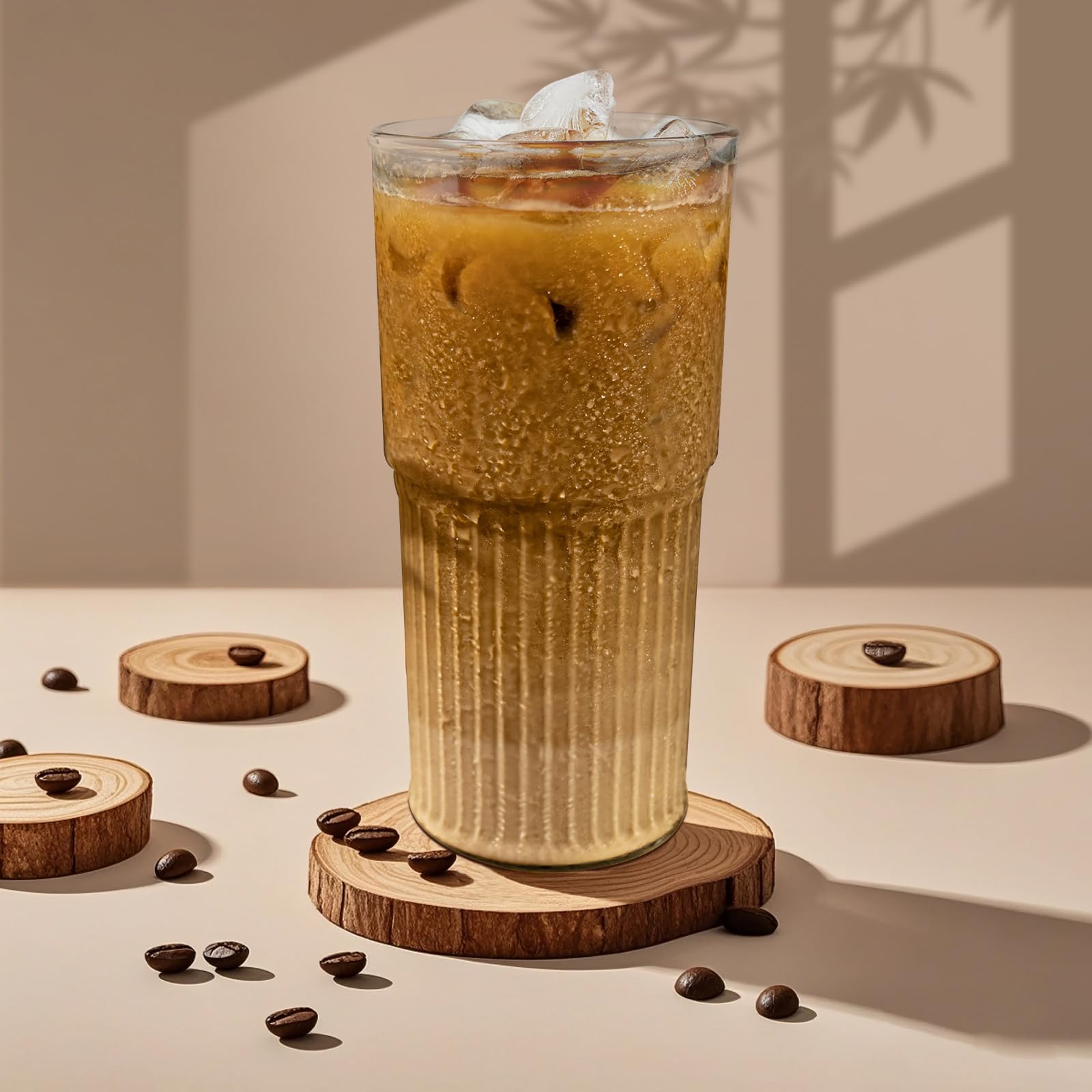 • ✅ Crystal-Clear Iced Coffee Glasses: No Aftertaste Glass iced coffee cups with lids showcase layered drinks beautifully. Preserves beverage purity without plastic/metal tastes. Versatile as glass coffee cups for juices, shakes, or cocktails.