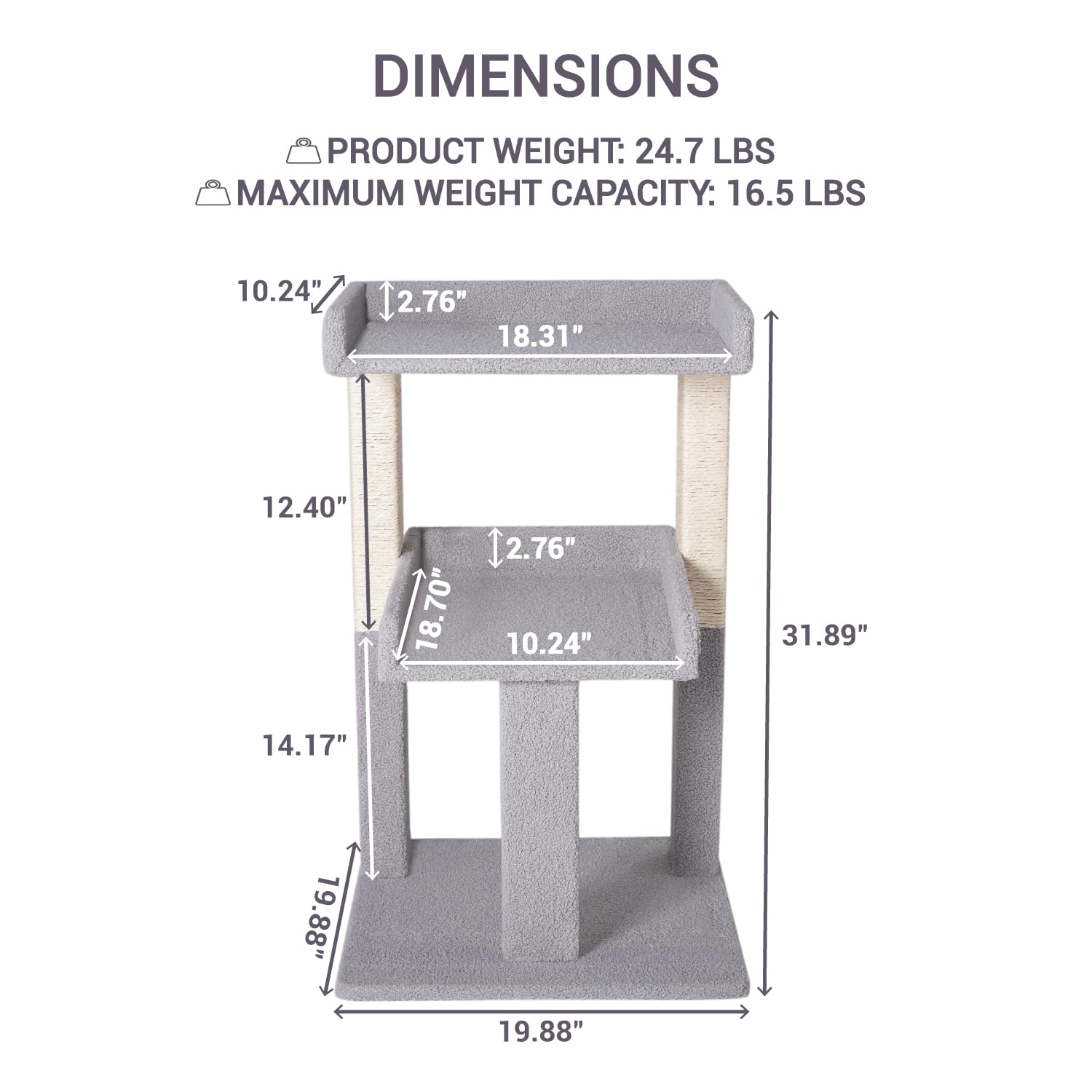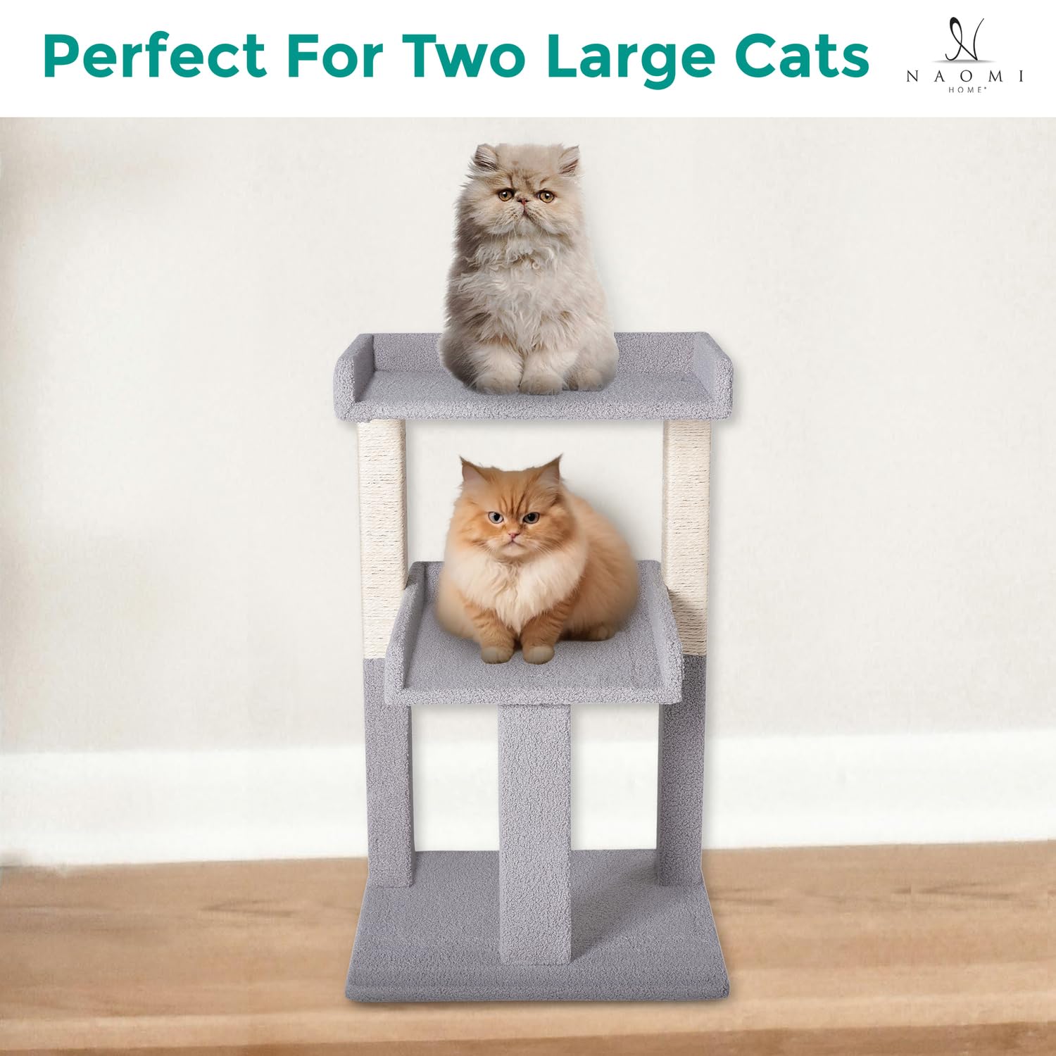 Lulu Cat Tree Tower - 2 Tier Cat condo for Large Cats Tower with Scratching Post Multi - Level Tree for Large Indoor Cats by Naomi Home Gray