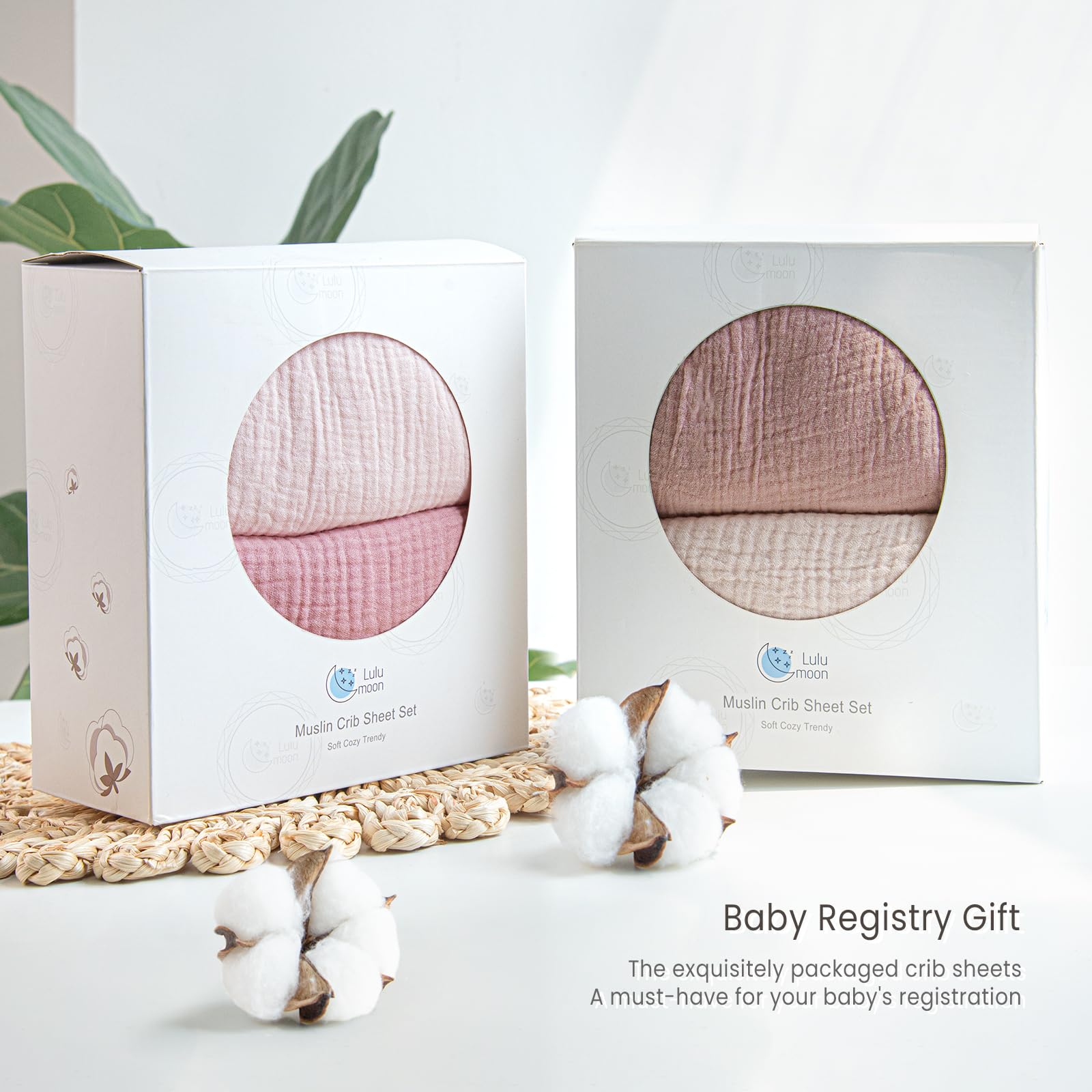 Lulu Moon Muslin Crib Sheets - Fitted Crib Mattress Sheets for Boys and Girl - 28"x 52", 2 Pack