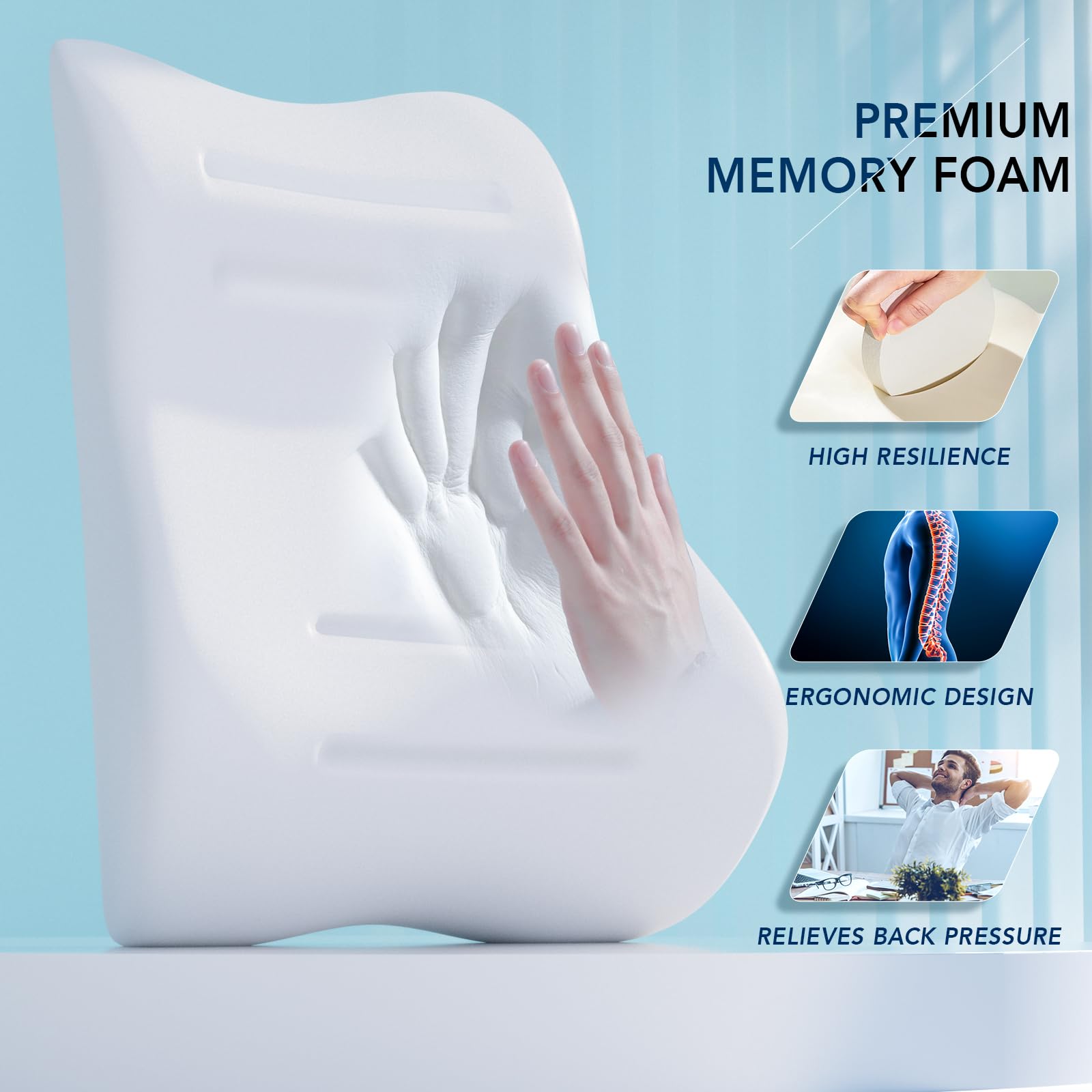 Lumbar Support Pillow for Office Chair & Car, Ergonomic Back Support Memory Foam Back Cushion with 3D Washable Cover, Relieves Back Pain for Driving, Gaming, Truck, Recliner