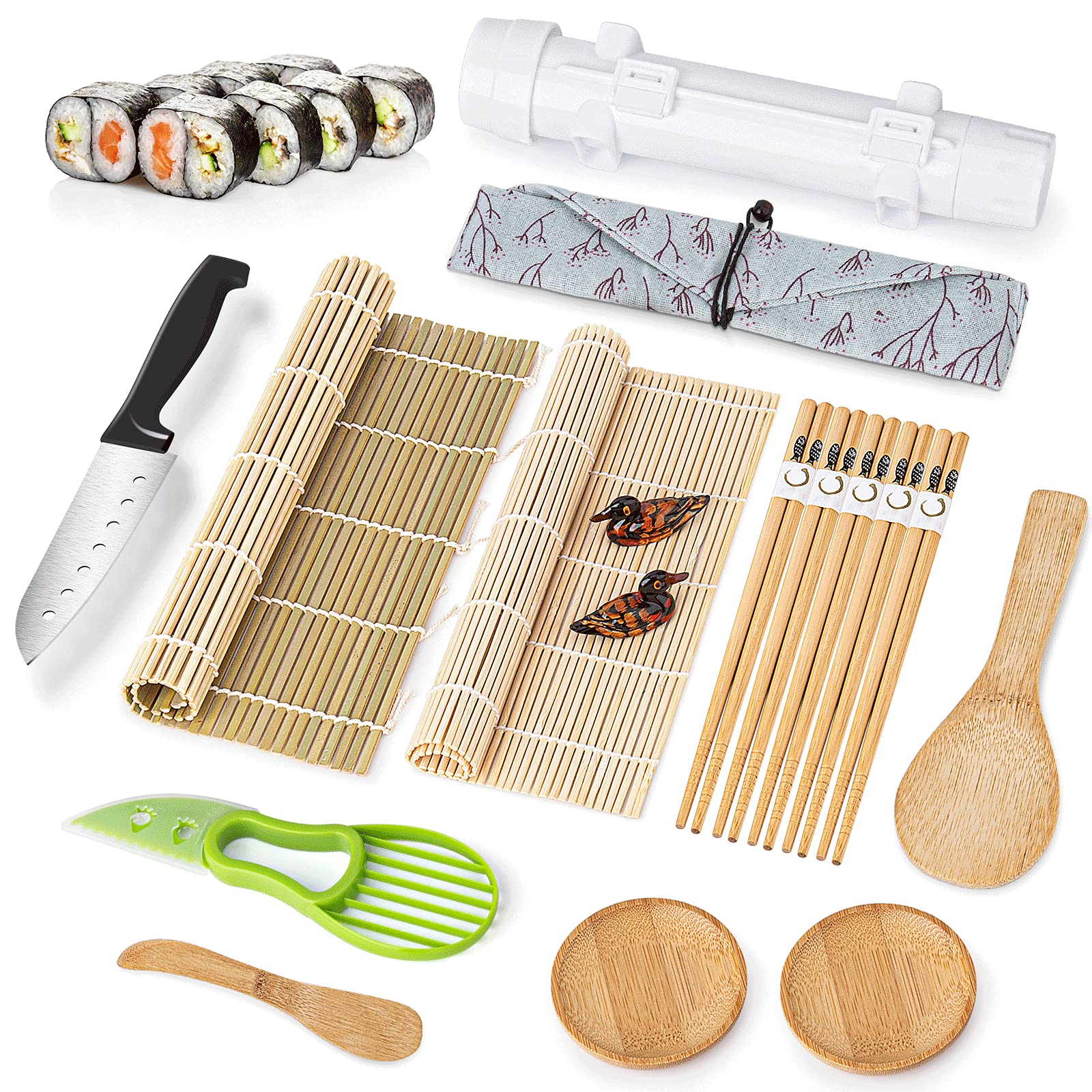 • Good Quality: Our sushi making kit for beginners is made by good-quality material, so you can enjoy your sushi party with your family! You will receive sushi bazooka, sushi knife, sushi rolling mats, chopsticks, rice paddle, rice spreader, avocado slicer tool, sauce dishes and chopsticks holders. You will receive a complete set of sushi making tools