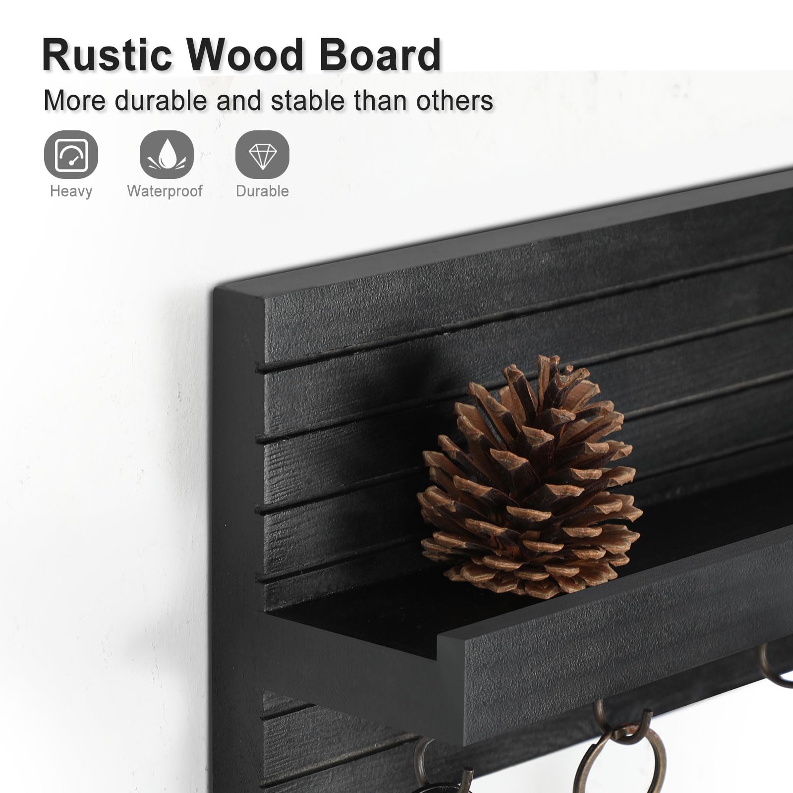• CONTEMPORARY KEY HOLDER for wall is decorative and versatile, melding with farmhouse or modern furnishings. Our key hook with shelf is available in black, white or brown to complement any color pallette.