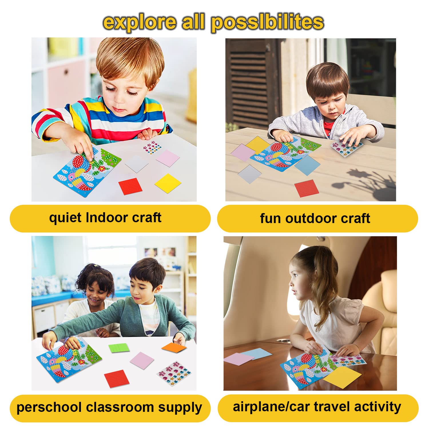 LZHZH Mosaic Sticker Art Sticky DIY Handmade Art Kits for Kids - Sunflower, Butterfly, Sailboat, Woodpecker, hot air Balloon, Airplane (6 Pack) (Handmade Art Kits for Kids)