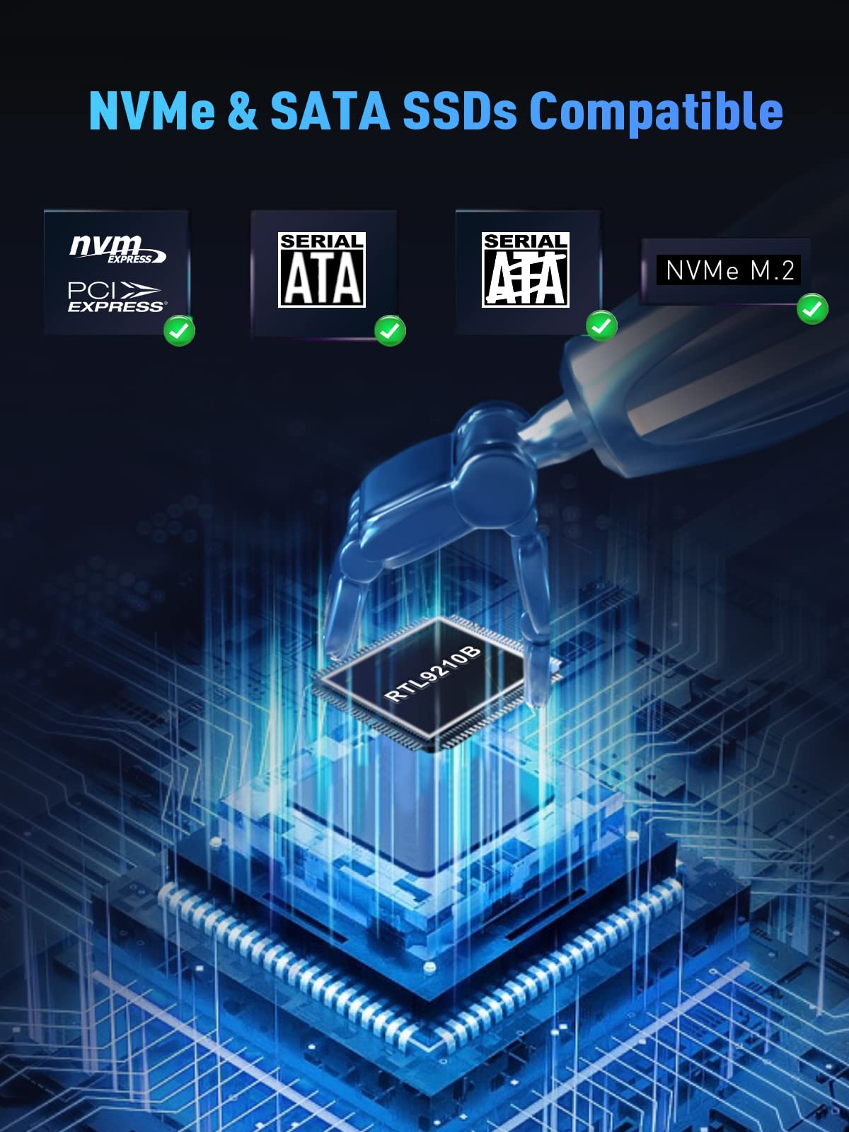• 【Design for M.2 NVME/SATA SSDs】 The VCOM SSD enclosure does support dual protocol for both NVME and SATA, work for M.2 NVMe M Key & (M+B) Key and M.2 SATA (M+B) Key. Applicable with SSD in sizes 2230/2242/2260/2280.