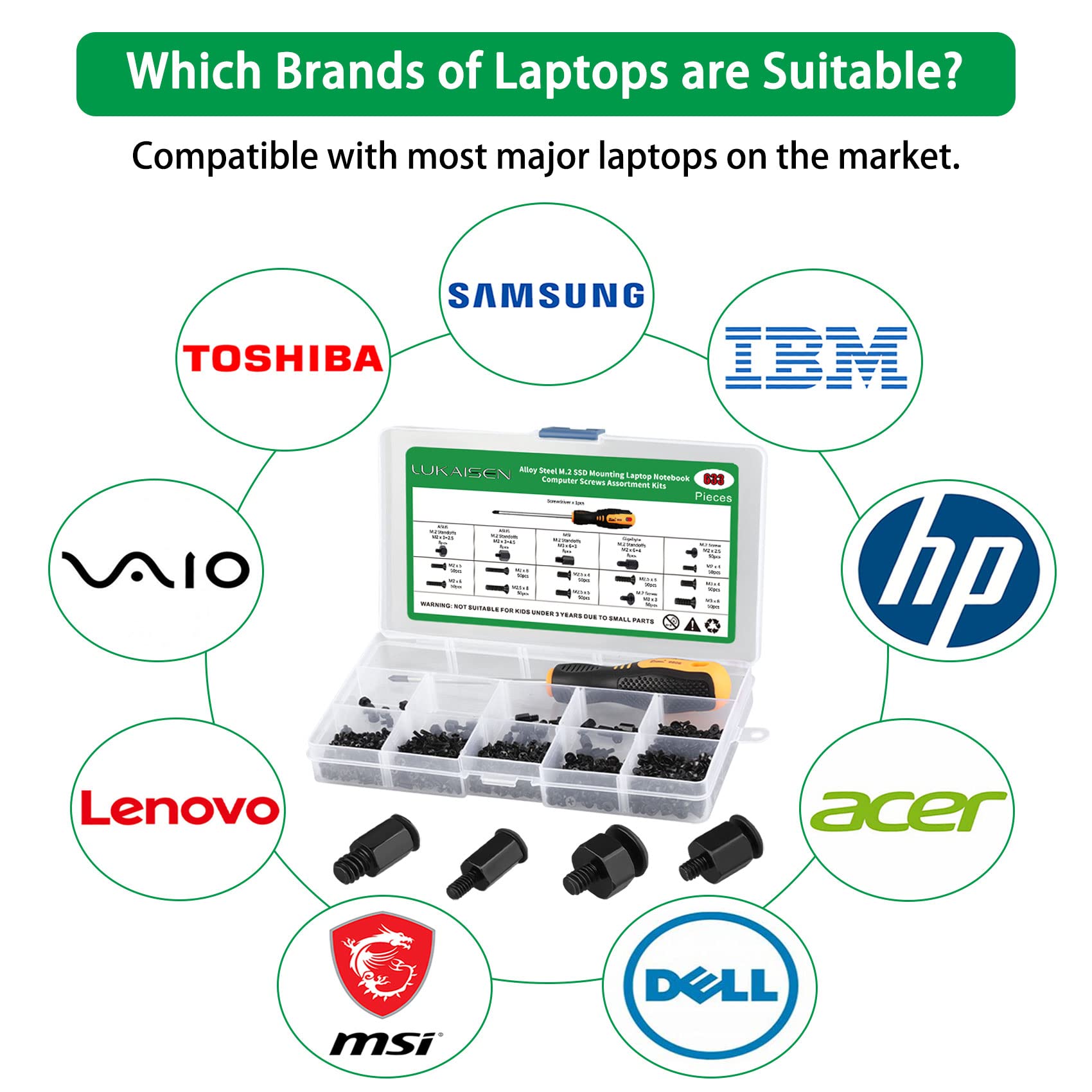 • 【Perfect Laptop Screw Kit】- You can get 633 pieces of 16 different types of laptop screw kits, including 4 types of mainstream M.2 SSD mounting studs, 2 types of M.2 screws and 10 mainstream flat-head laptop screws. The kit also comes with a free CRV magnetic screwdriver, so you don't need to purchase it separately. The screwdriver heads with strong magnetism allow you to handle tiny screws with ease. The understated black color hides them in your laptop without sticking out.
