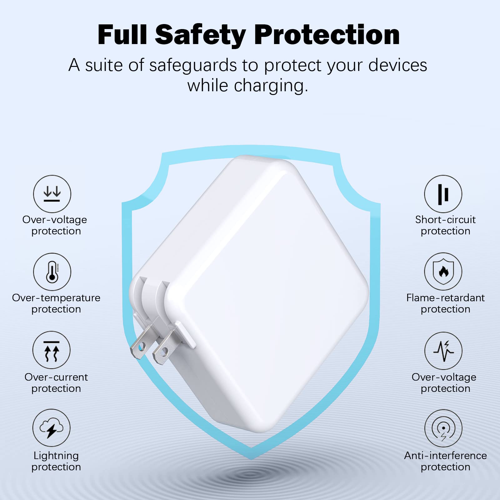 • Wide Compatibility: Our charger is compatible with USB C port macbook pro & macbook air 16 15 14 13 inch, ipad pro & air and all type c devices. With the features of automatic identification and conversion of charging power according to your devices